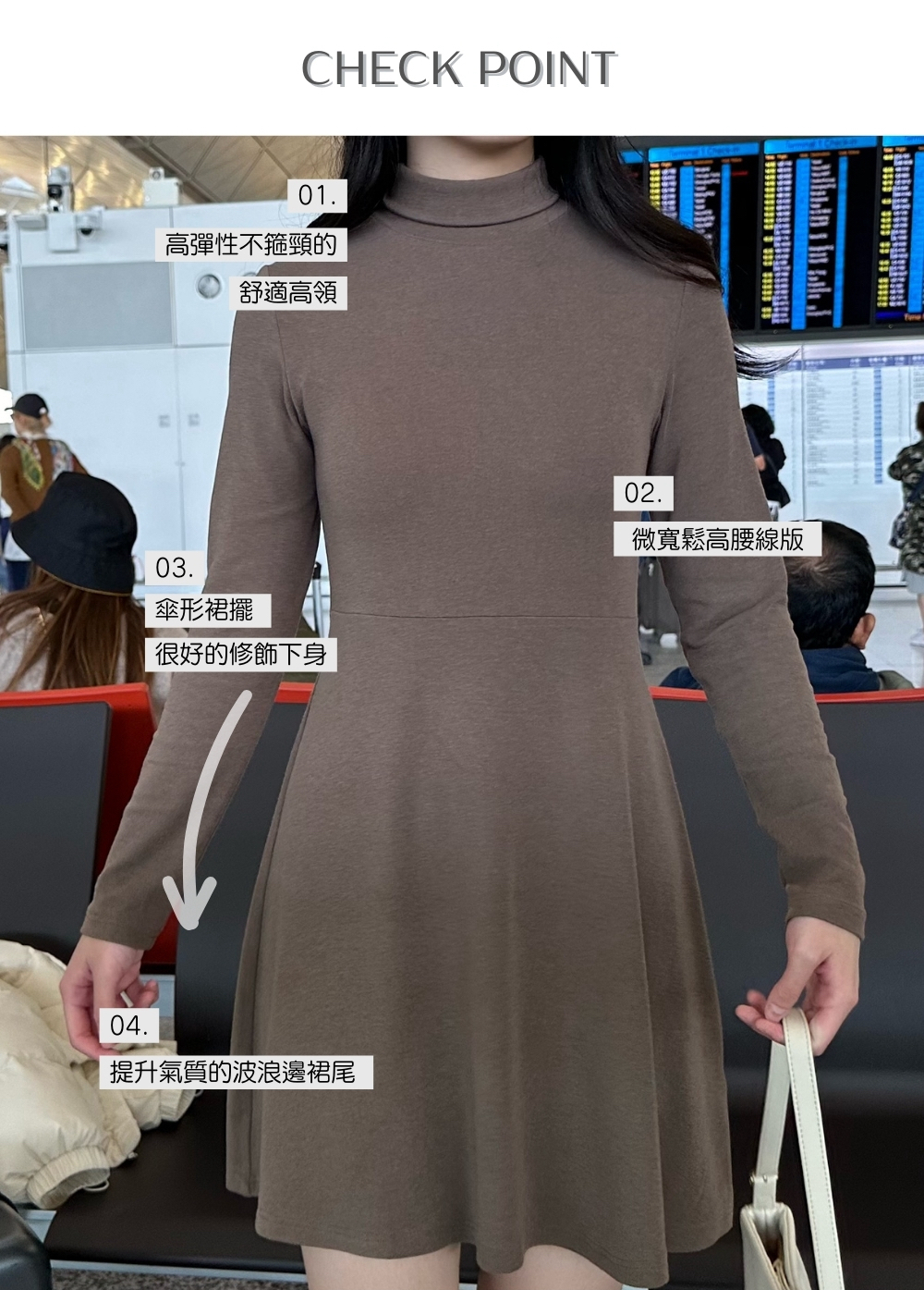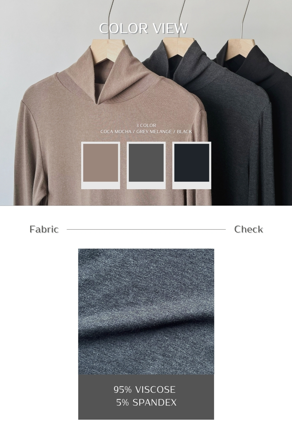 ⋄ 高彈性不箍頸的舒適高領