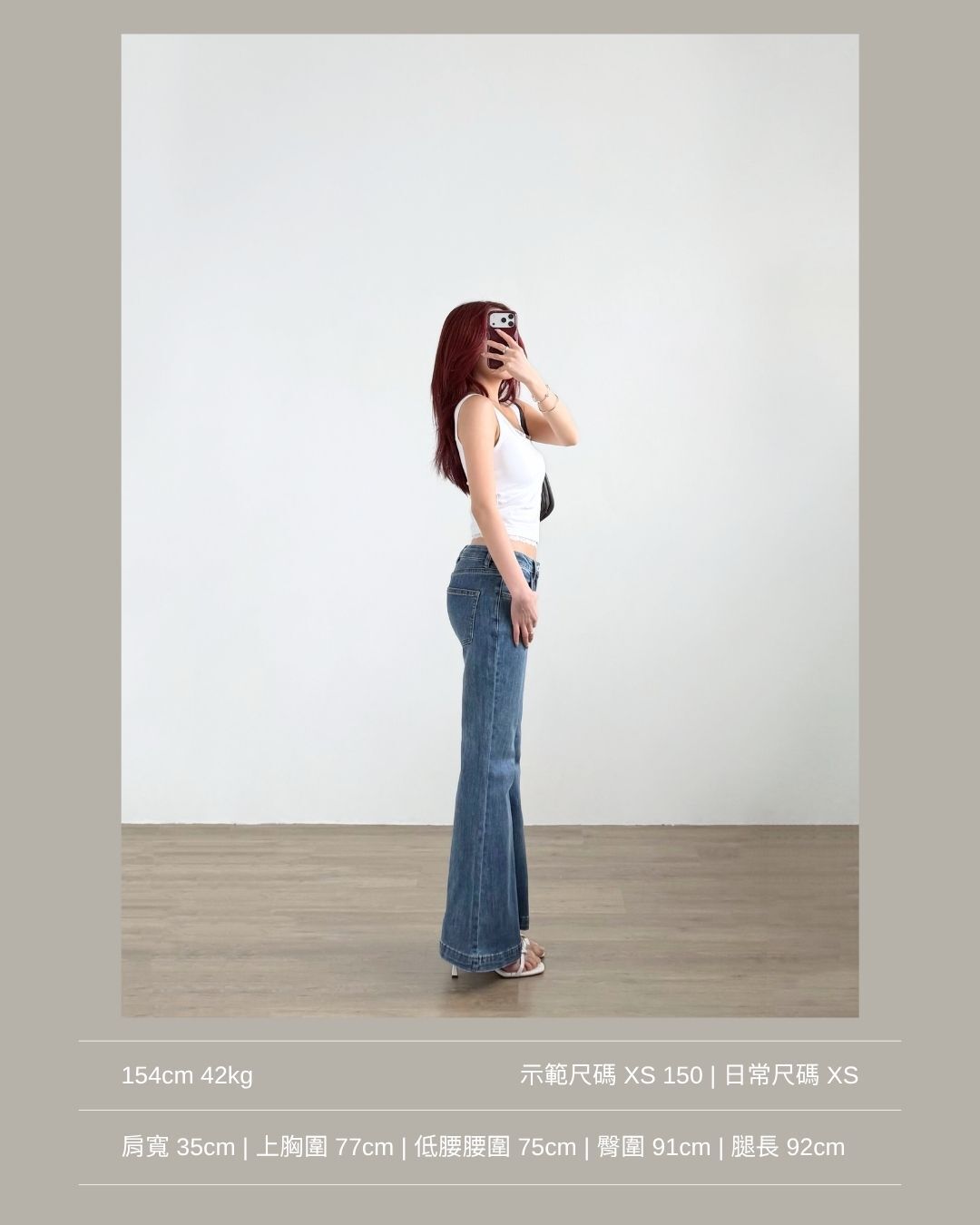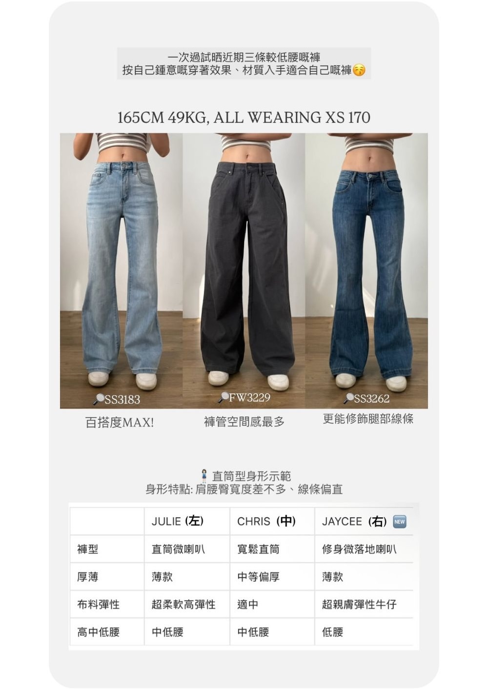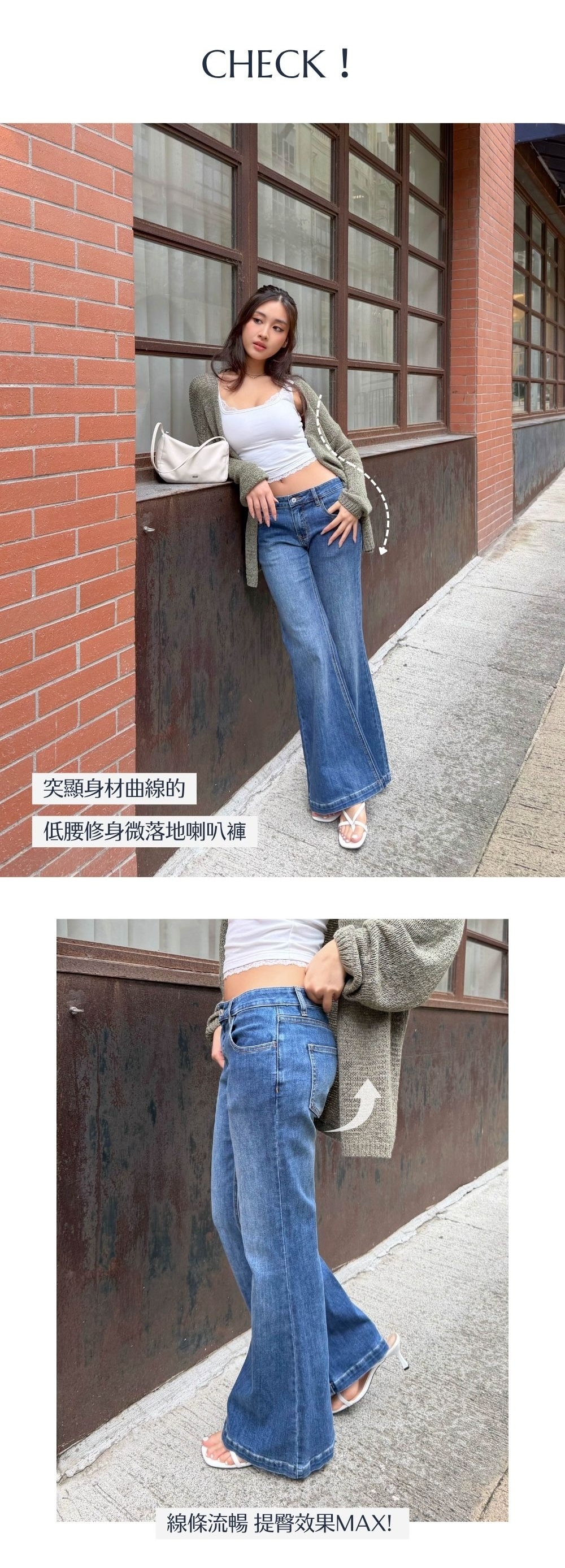 低腰穿著 / 修身微落地喇叭褲 / 盆骨線條流暢 / 肉肉大腿ok!/