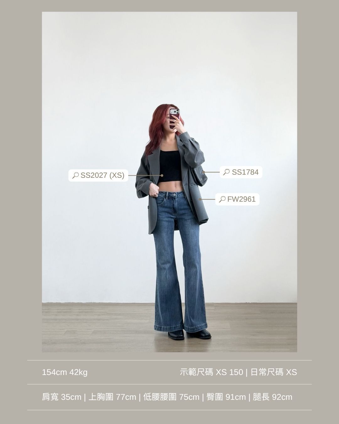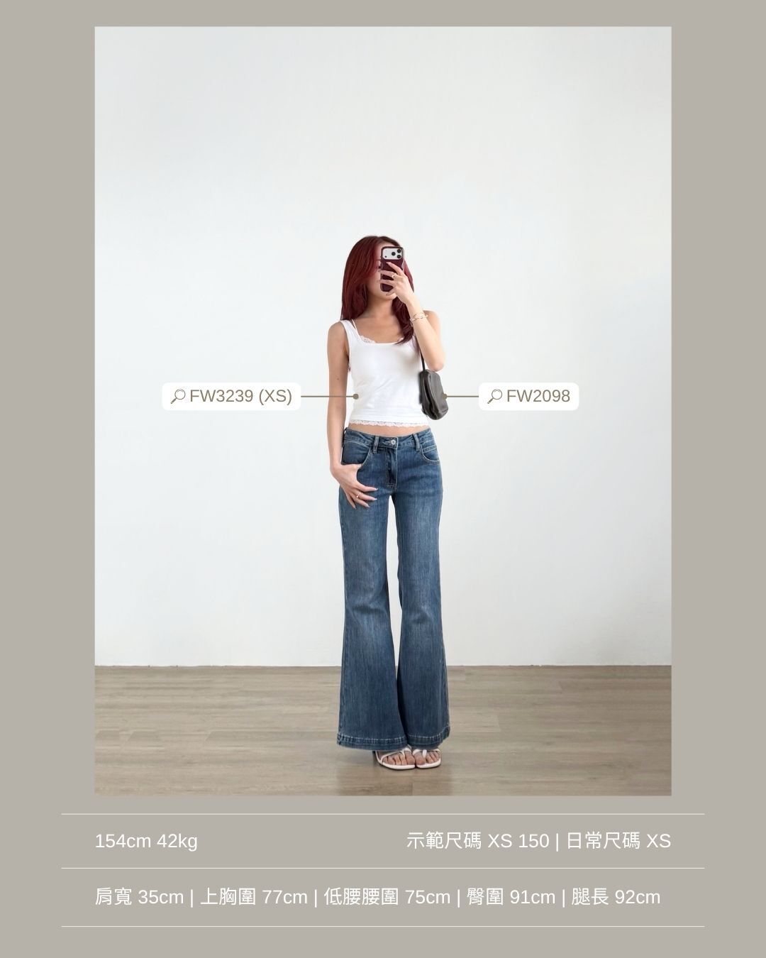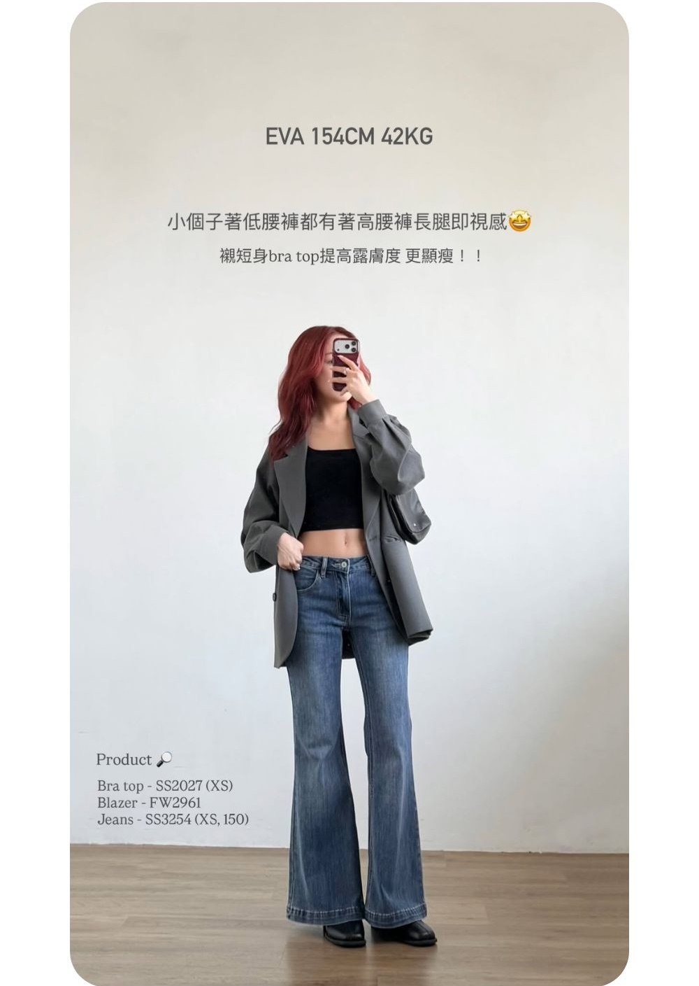 低腰穿著 / 修身微落地喇叭褲 / 盆骨線條流暢 / 肉肉大腿ok!/