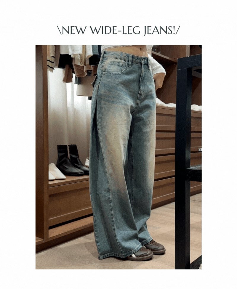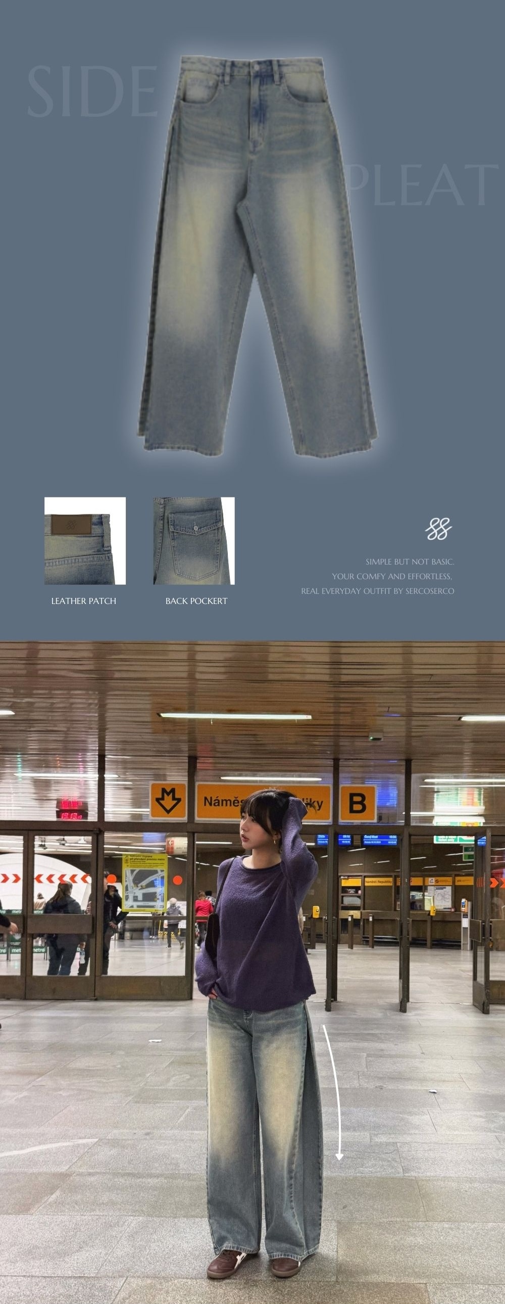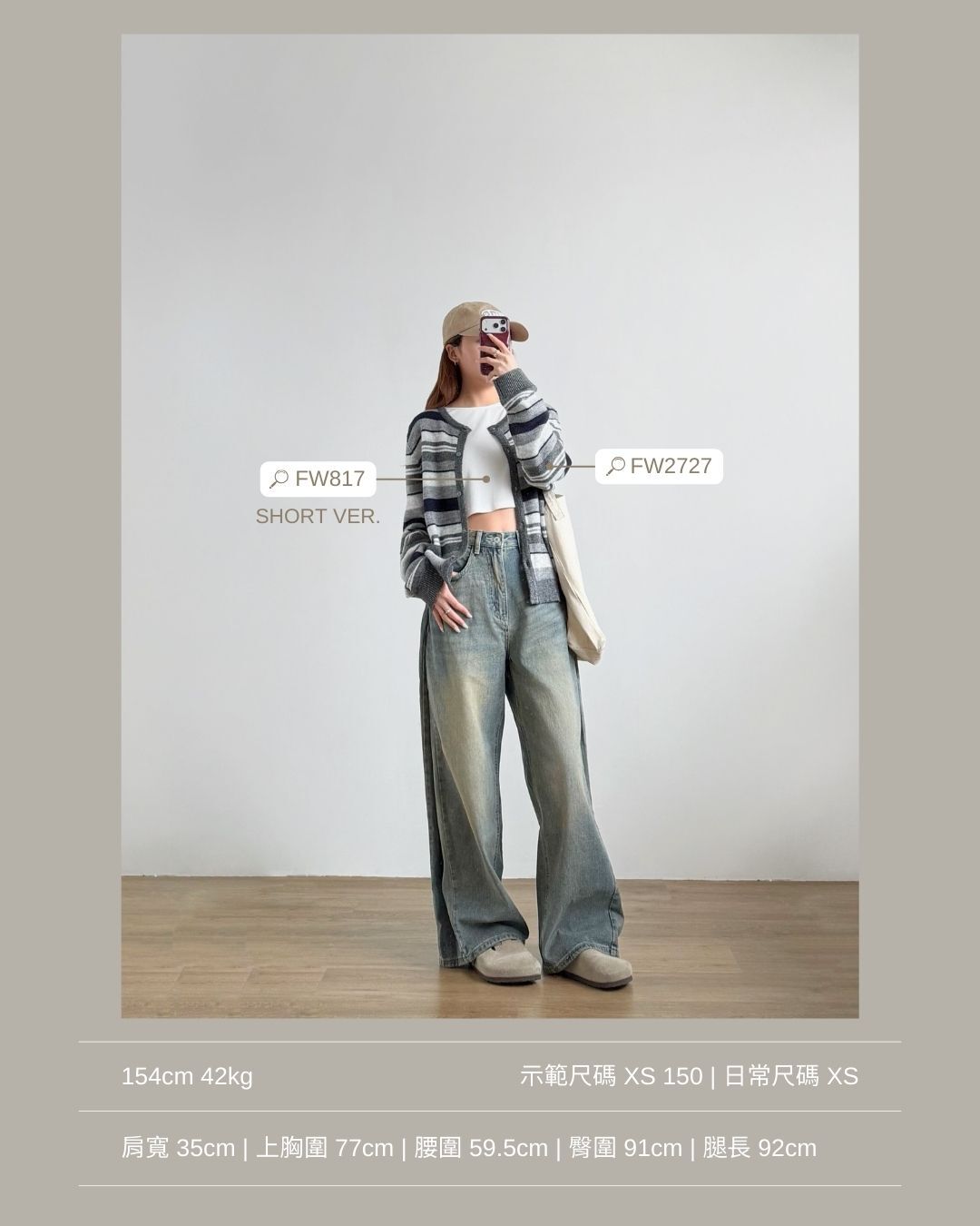 中等厚度 / 挺版牛仔布料 / 復古調洗水刷白 / 貓鬚細節 / 後有兩層式立體口袋