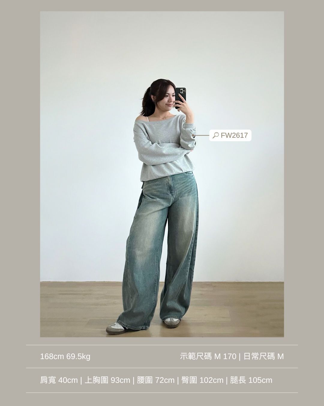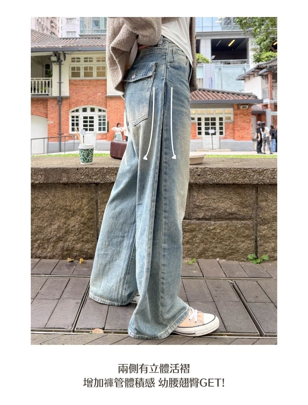 中低腰闊腳褲型 / 微落地褲長 / 保留腰腹纖細感 / 不顯盆骨 / 提臀袋蓋設計 / 視覺上翹臀