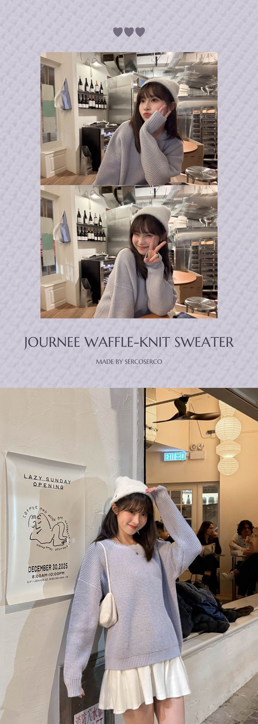 很少會看到窩夫格紋 + 針織毛衣的組合🧇