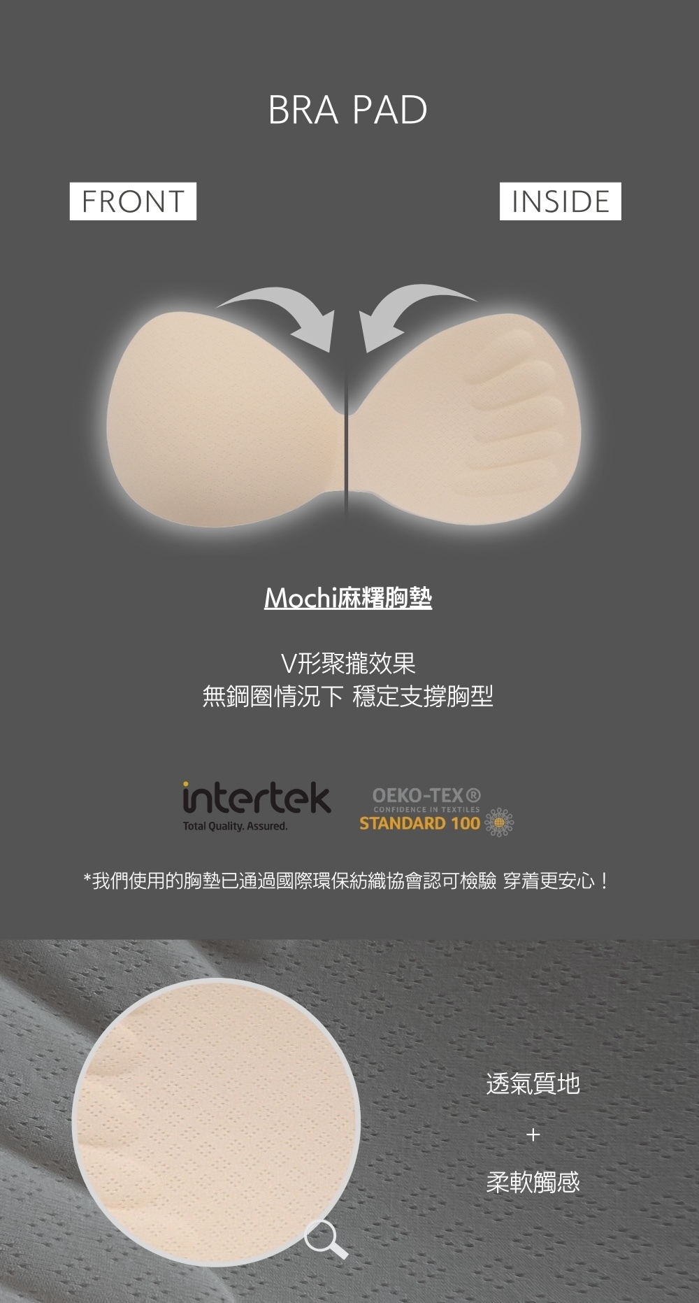 ⋄ 附上可拆卸胸墊