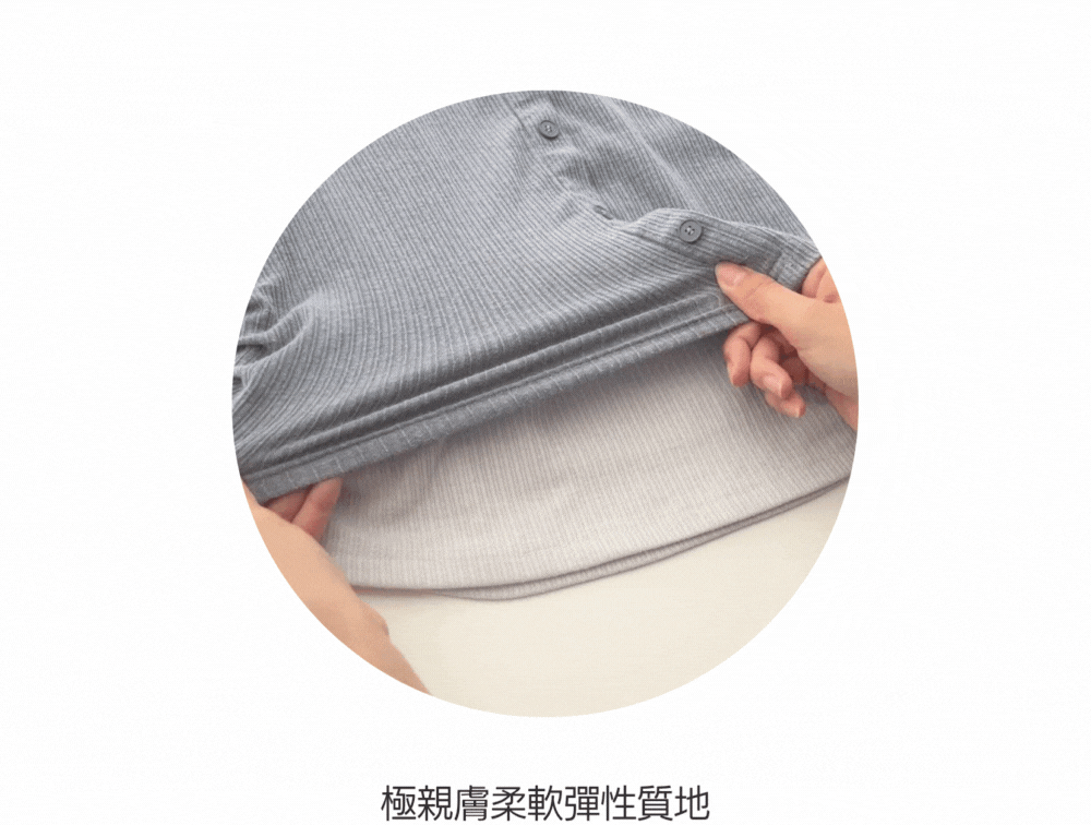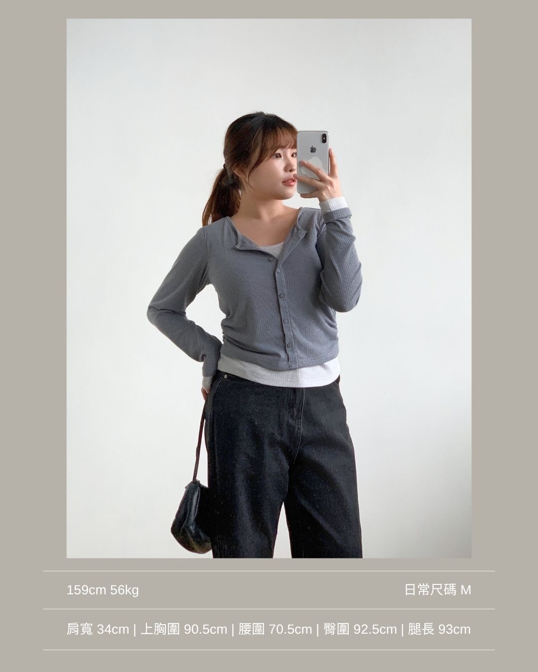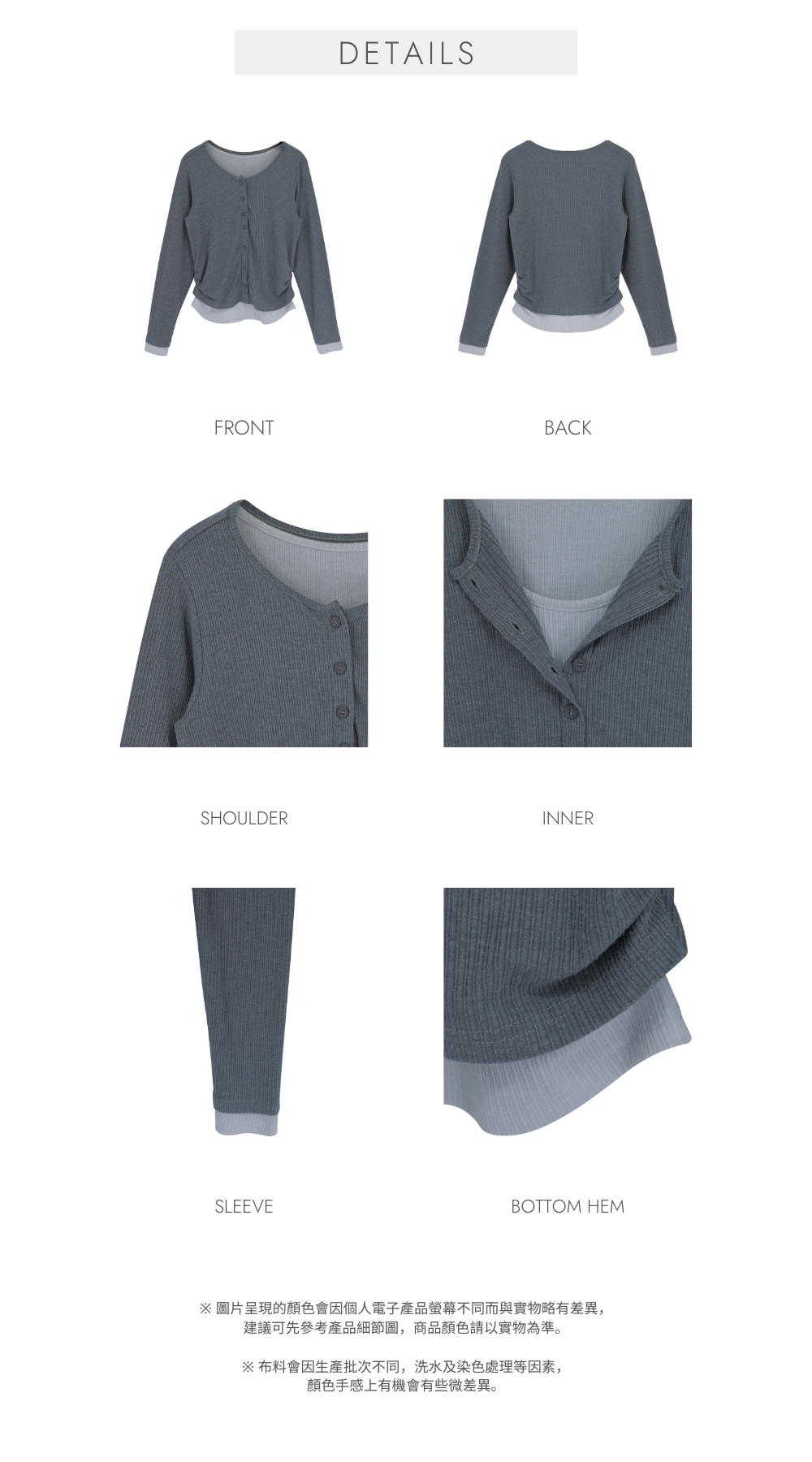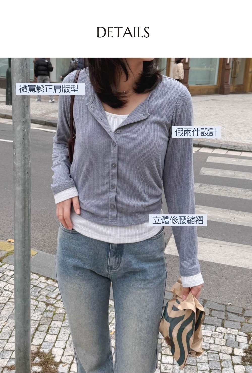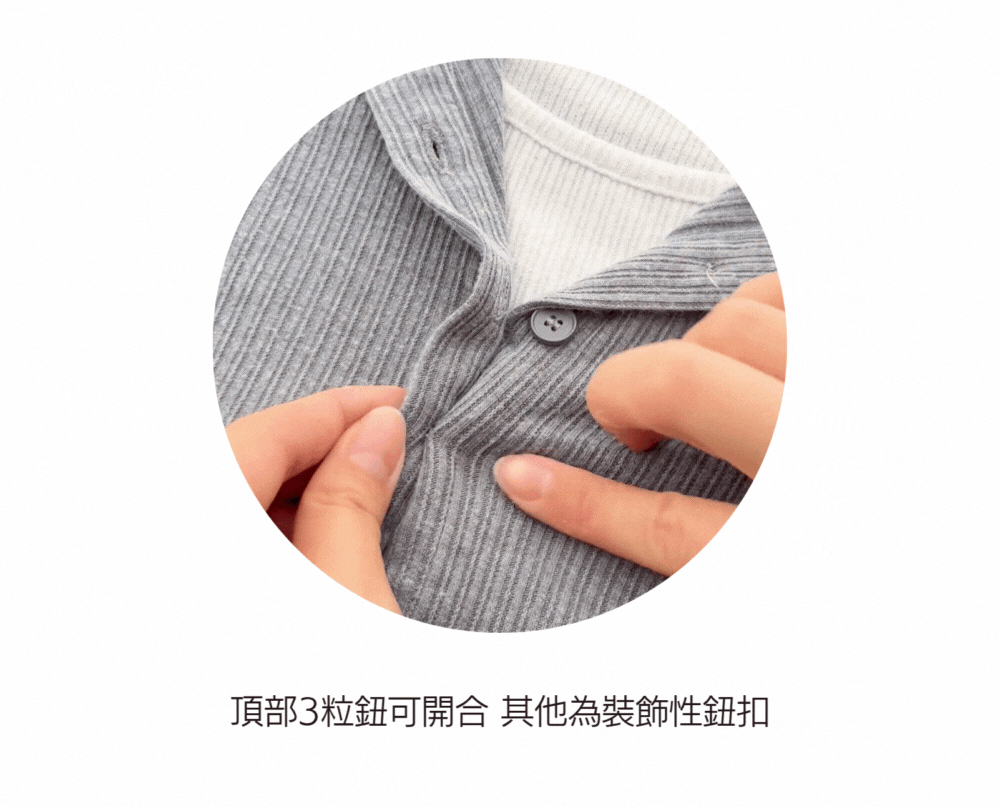 薄款 / 直坑紋針織布料 / 極親膚柔軟質地 / 假兩件設計 / 頂部3粒鈕可開合
