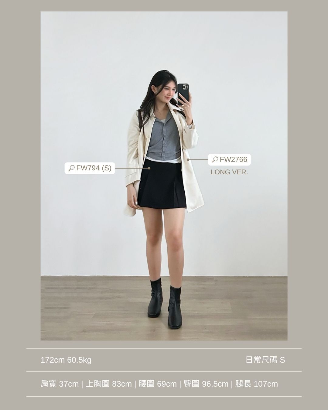 微寬鬆正肩版型 / 極顯骨感 / 立體修腰縮褶 / 藏小腹 / 顯手臂修長