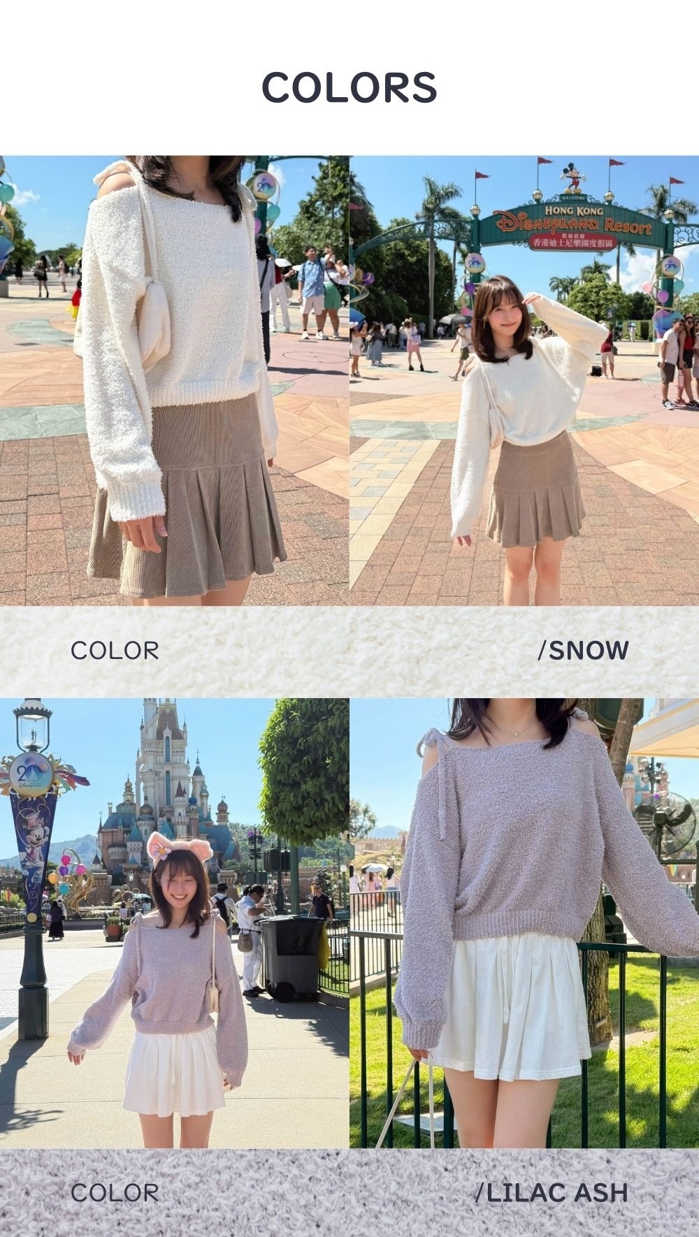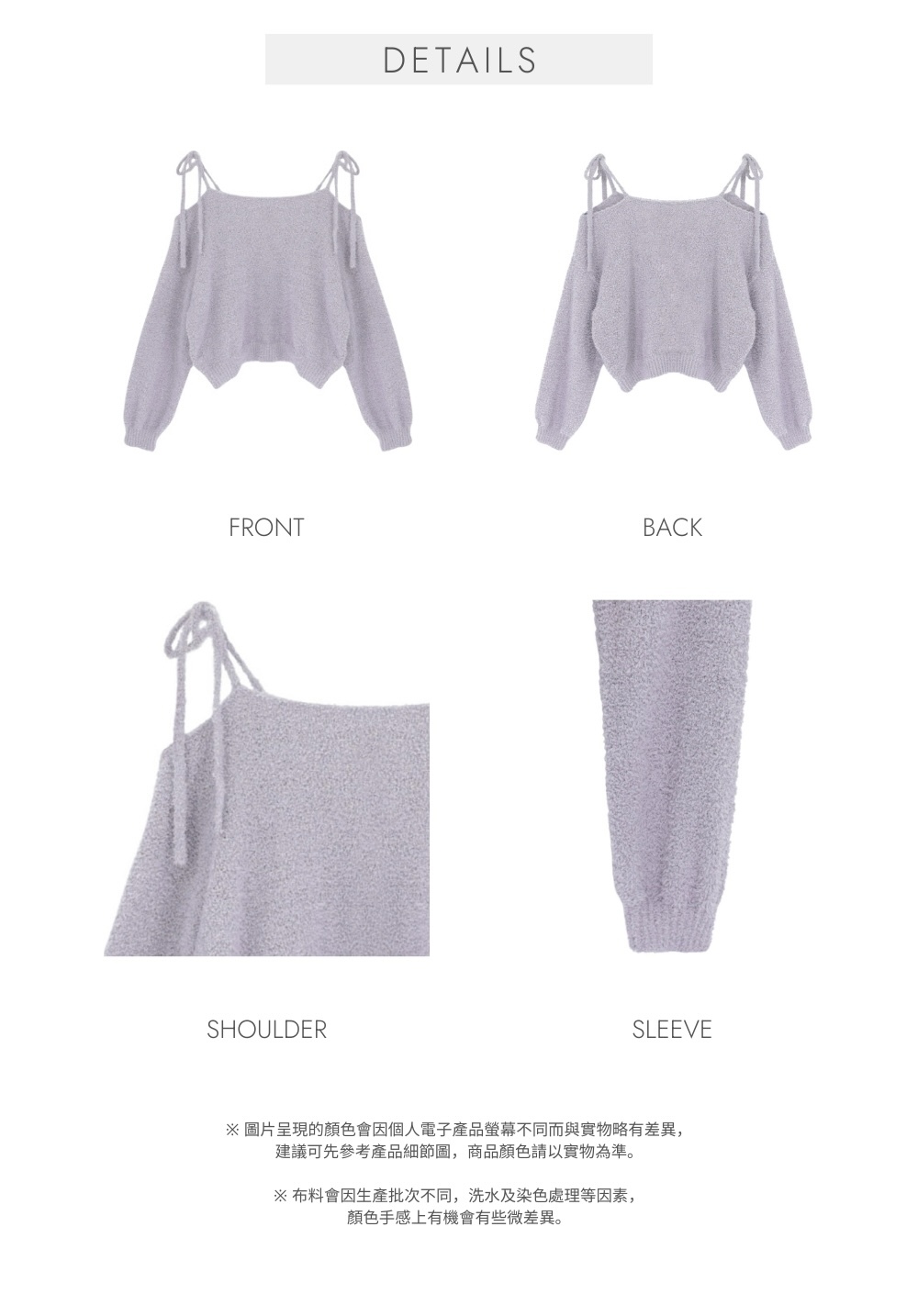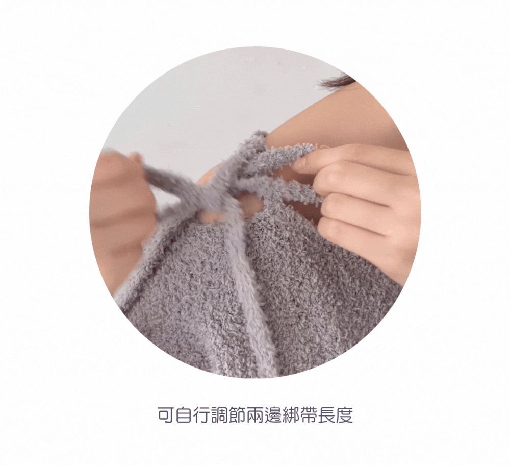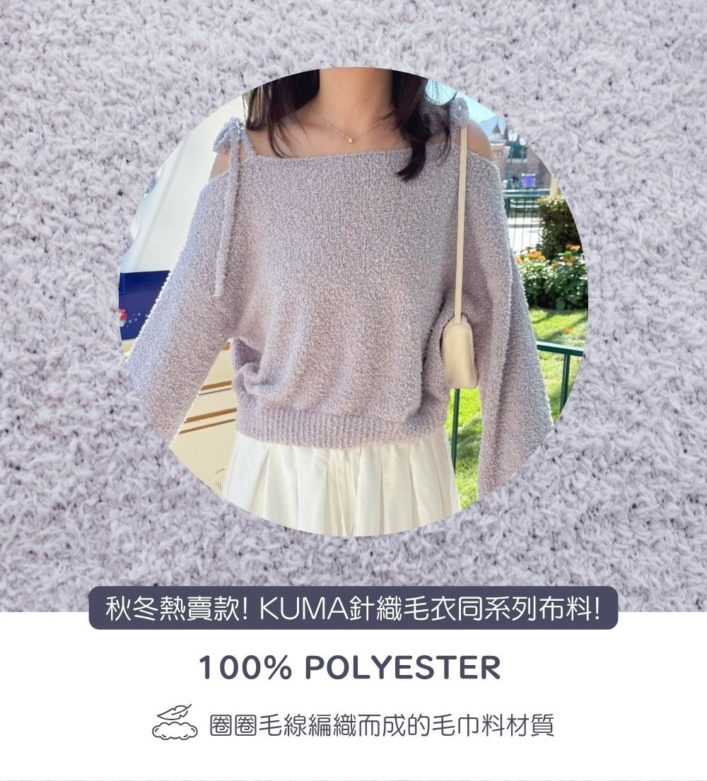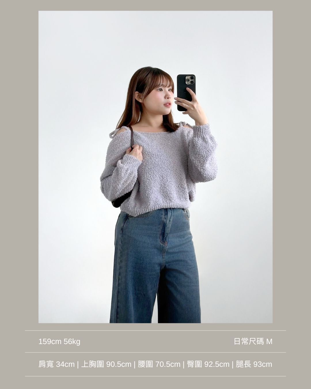 中等厚度 / 鬆軟毛巾料質地 / 寬鬆一字肩版型 / 蝴蝶結綁帶