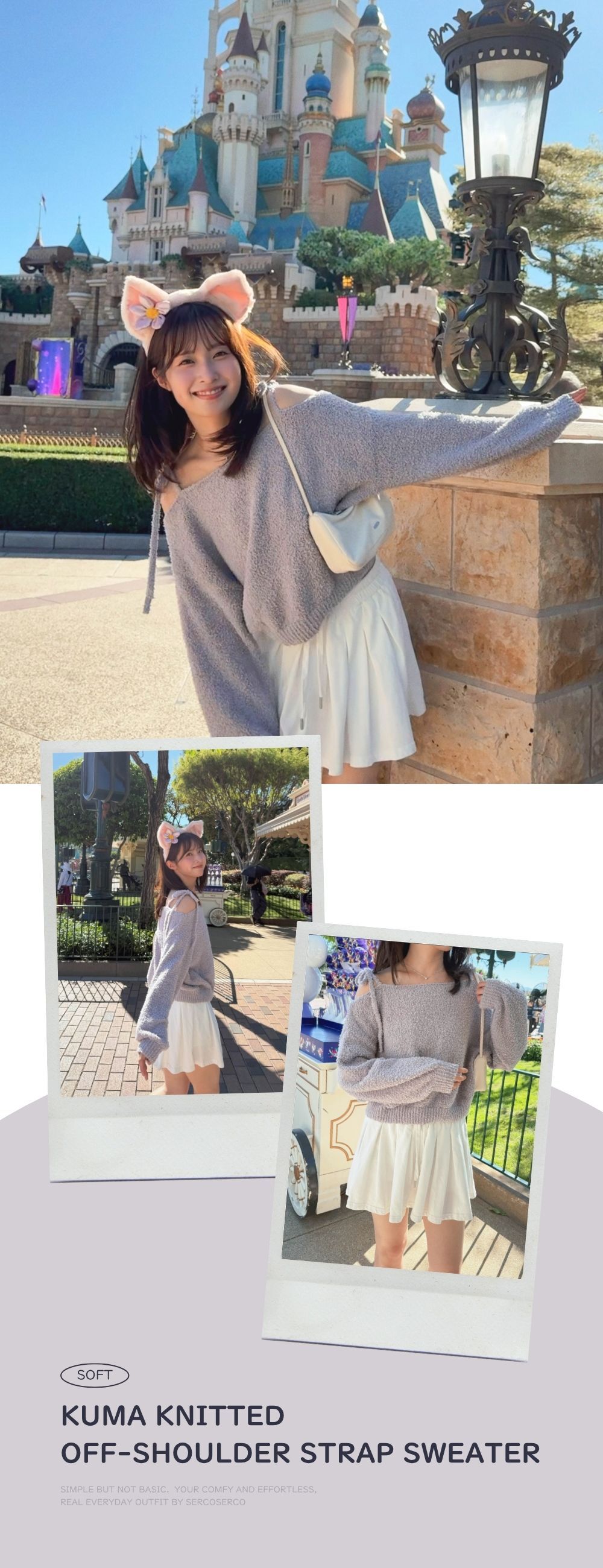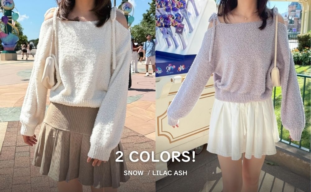 蝴蝶結綁帶露肩 + 微寬鬆泡泡版型