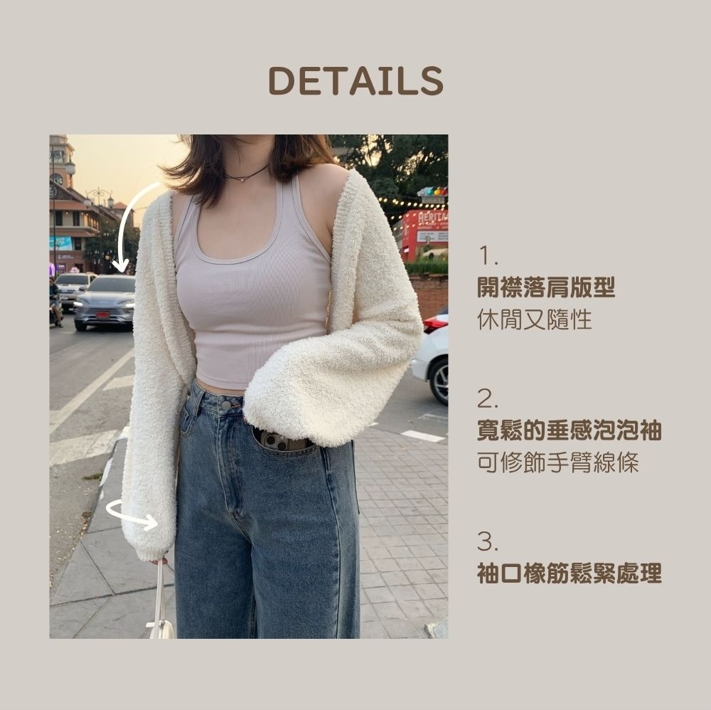 兜兜感的寬鬆袖身既休閒又帶點毛茸茸的可愛感 ॣ