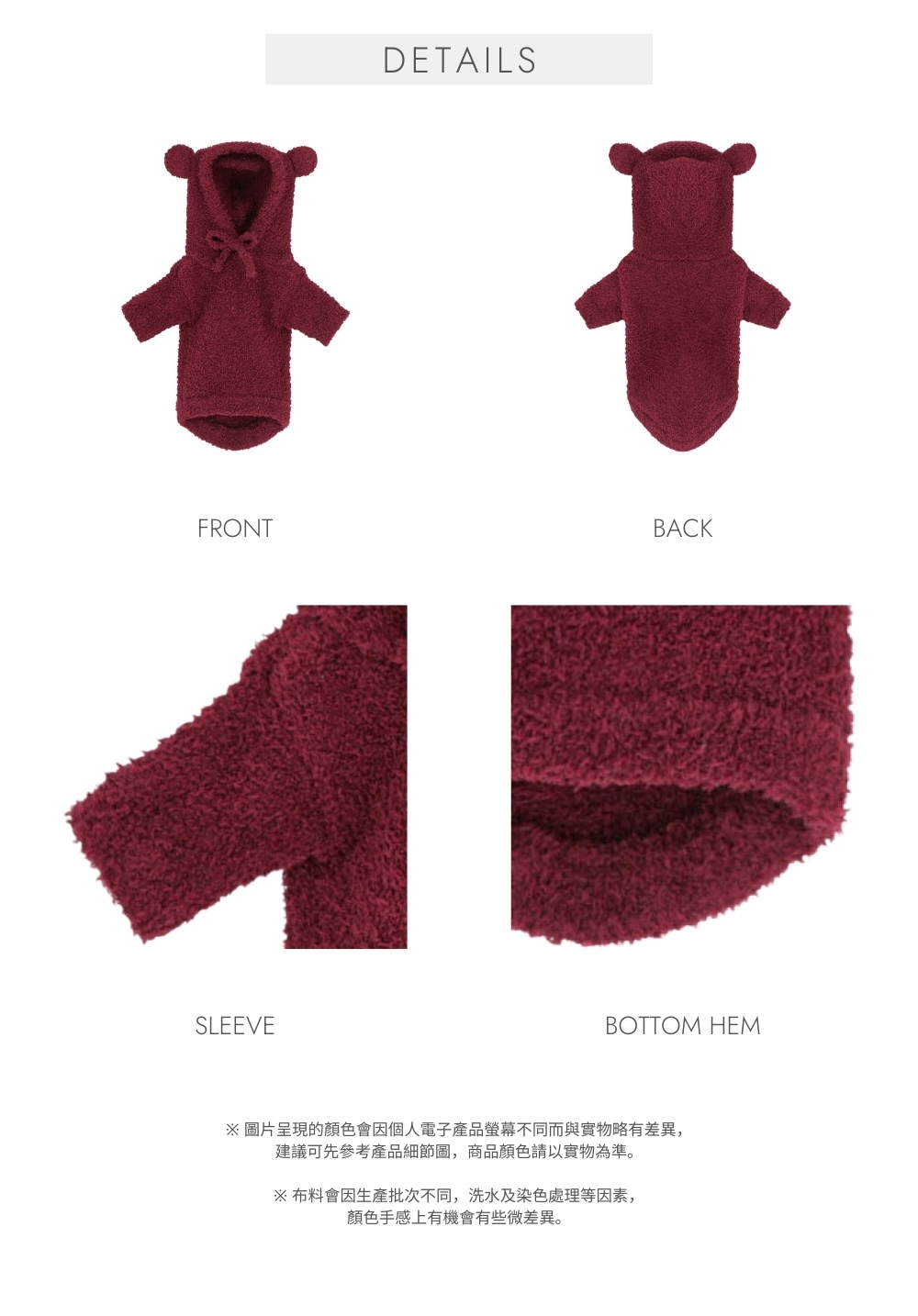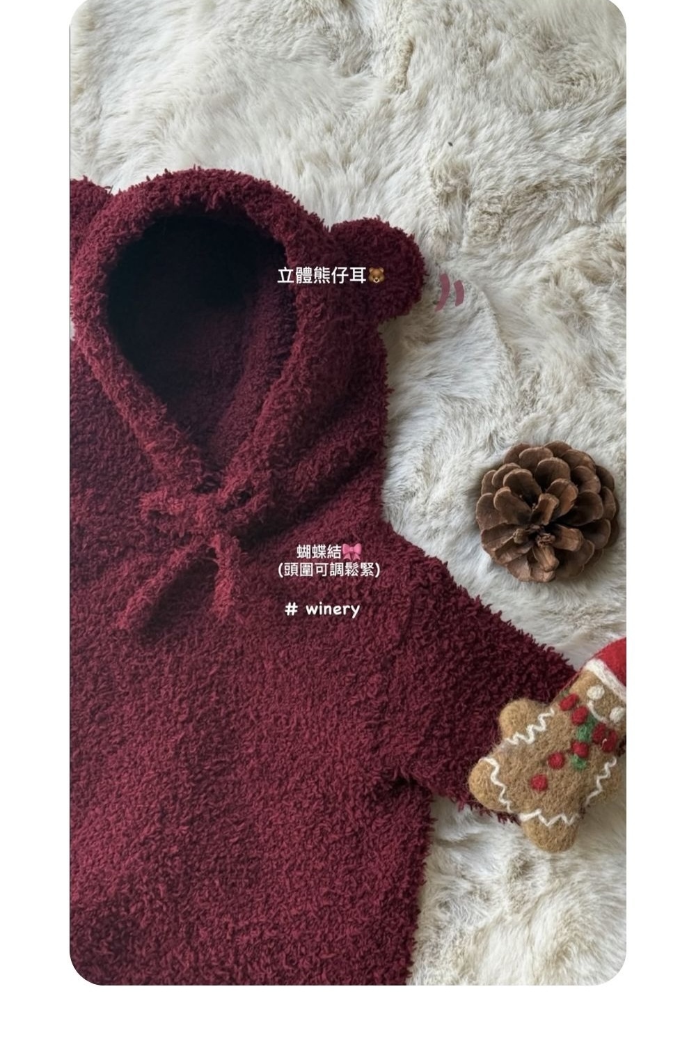 不易掉毛 / 立體小熊耳朵 / 抽繩兜帽設計 / 可機洗