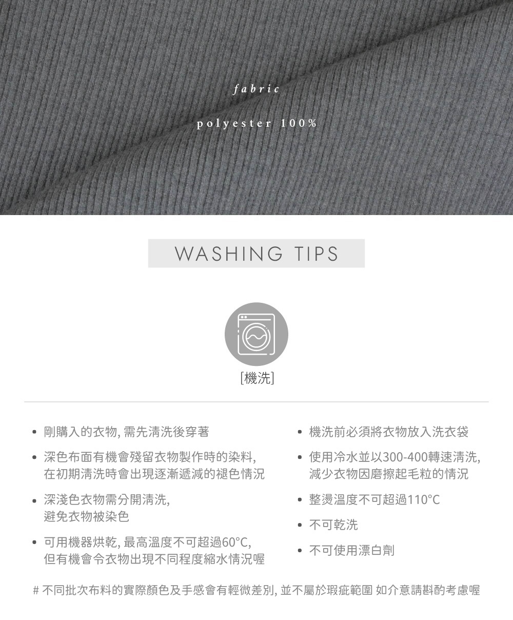 ⋄ 高彈性的挺版親膚羅紋針織