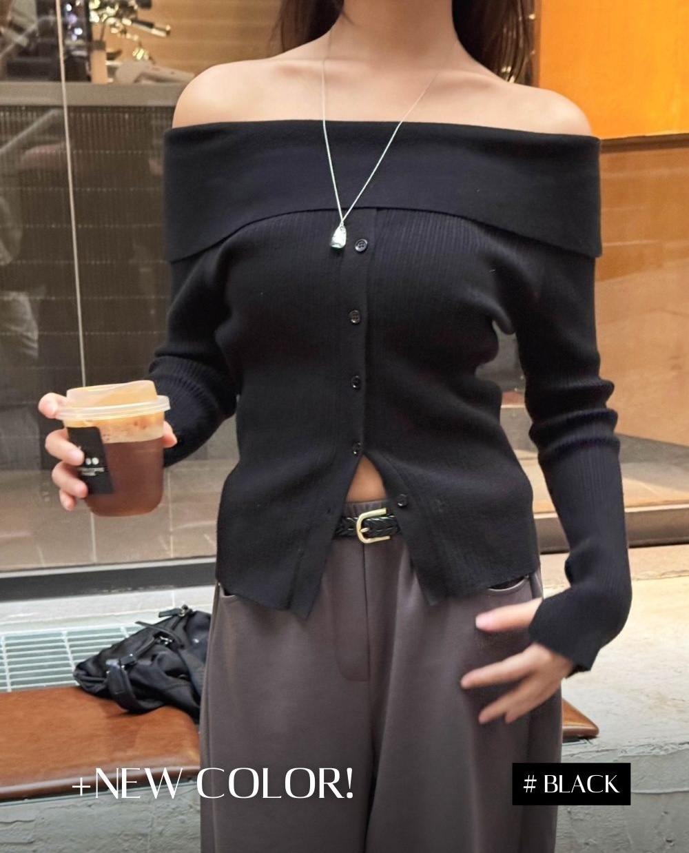 店主生日款式 🎂 女友感滿滿的一字肩針織top♡