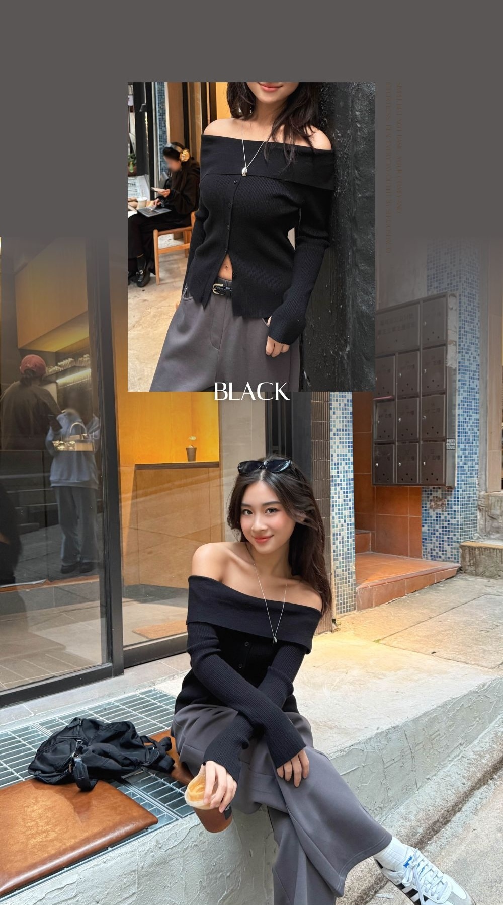 剛好的露膚度 只露出最瘦的肩頸、鎖骨線條