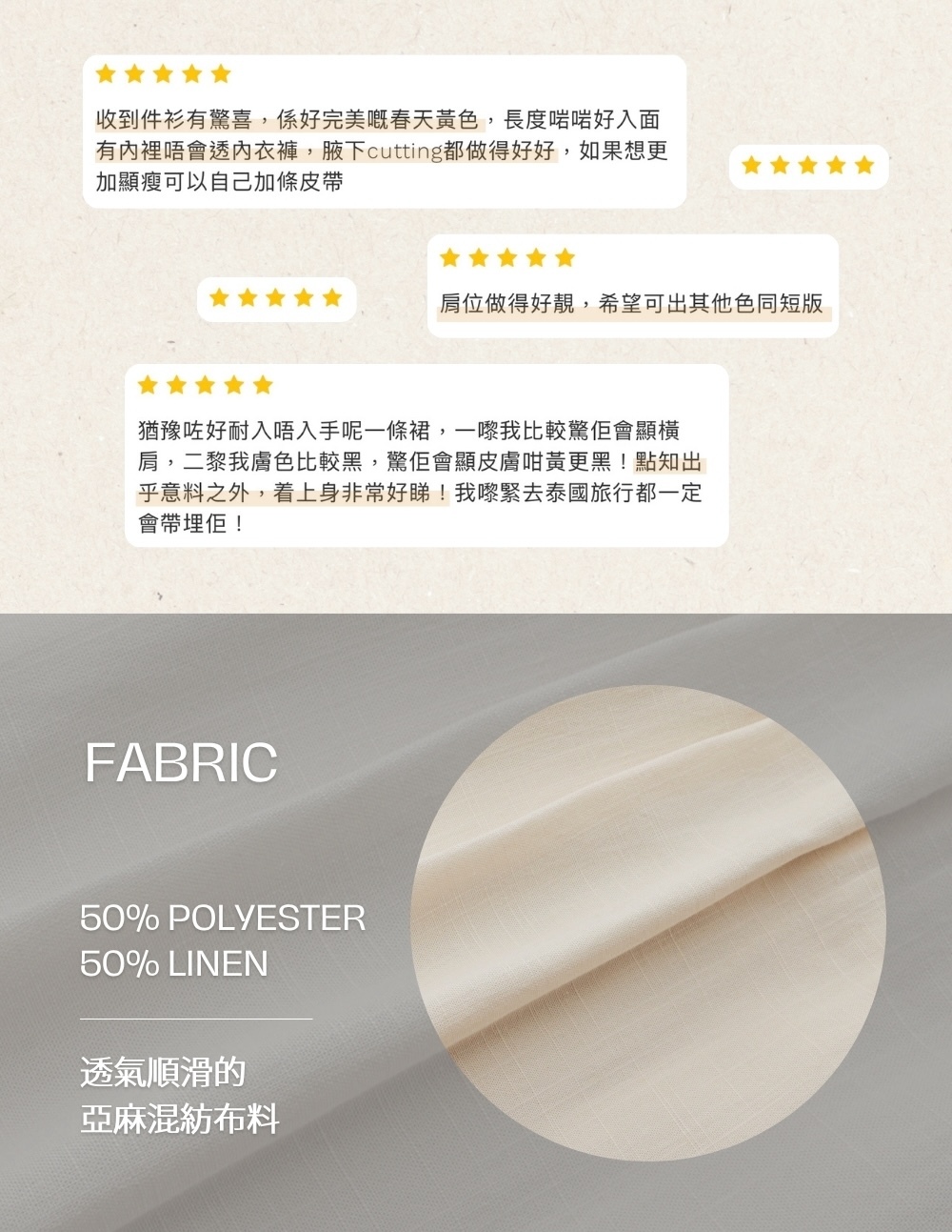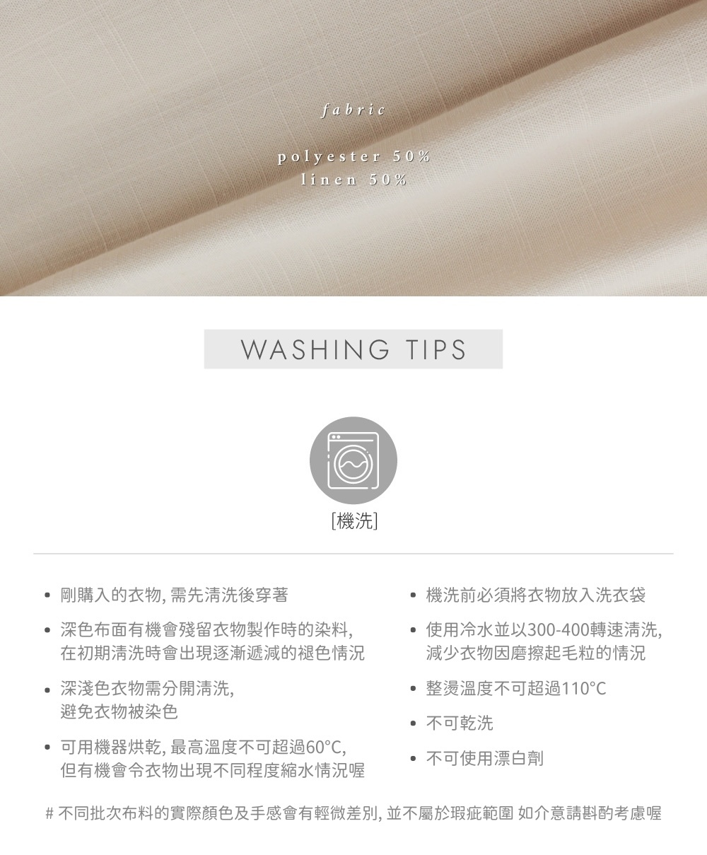 ⋄ 透氣順滑的亞麻混紡布料