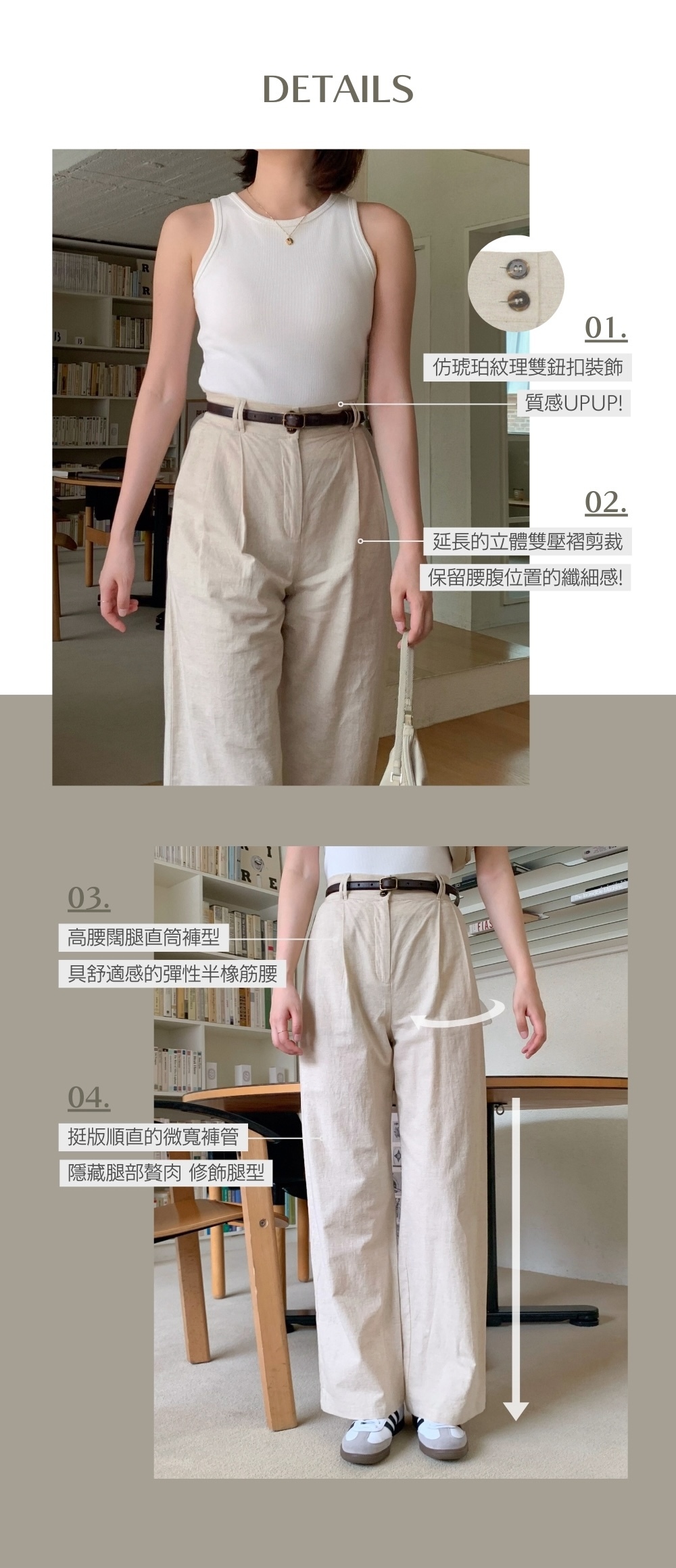 ⋄ 褲頭為仿琥珀紋理雙鈕扣裝飾