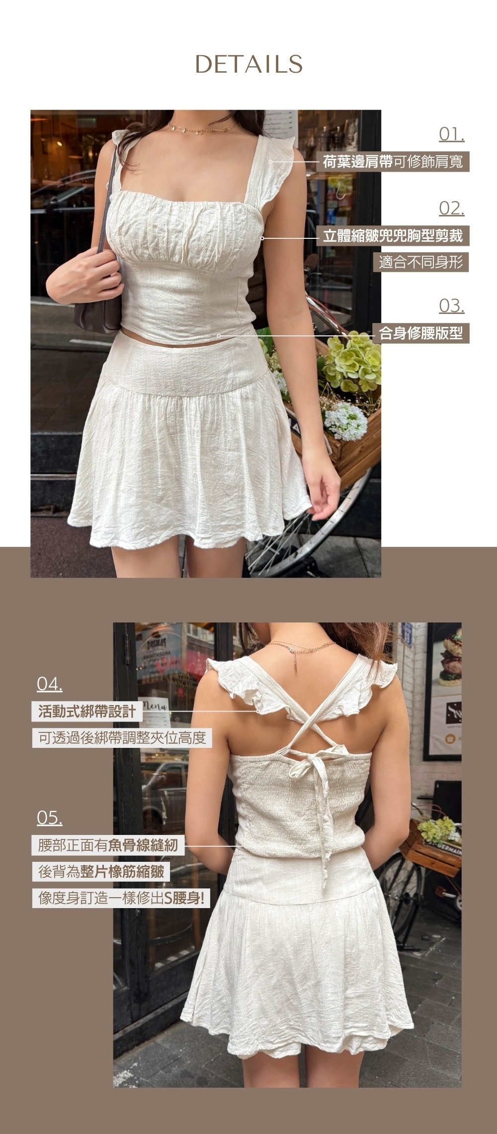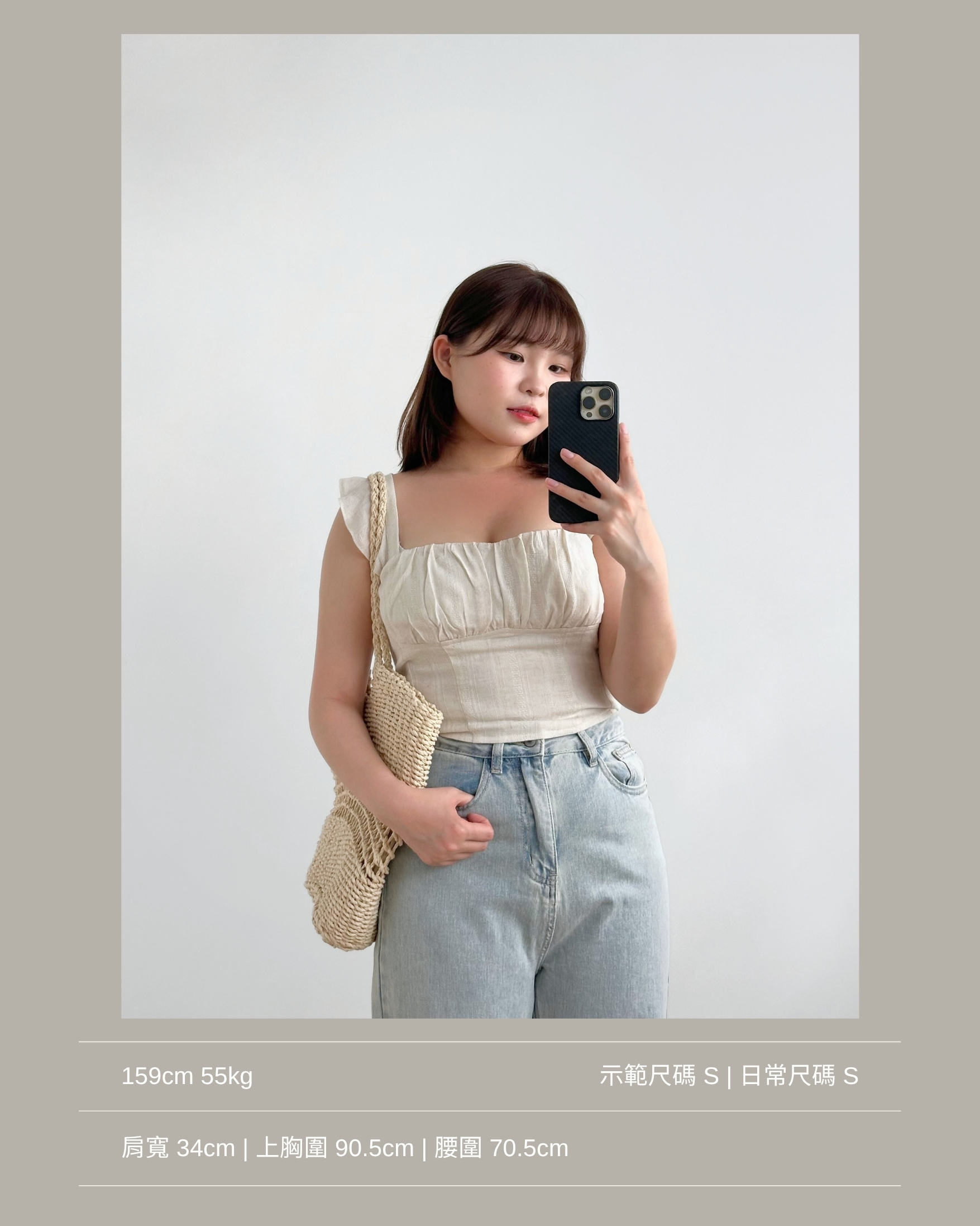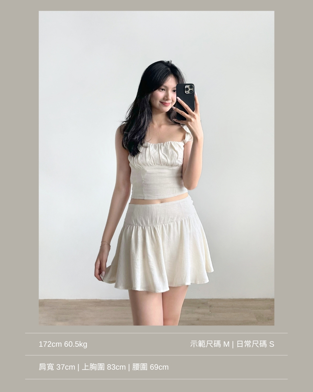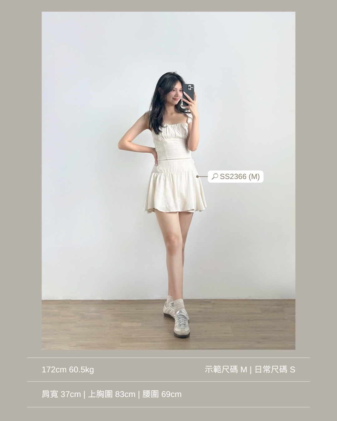 ⋄ 腰部正面有魚骨線縫紉 後背為整片橡筋縮皺
