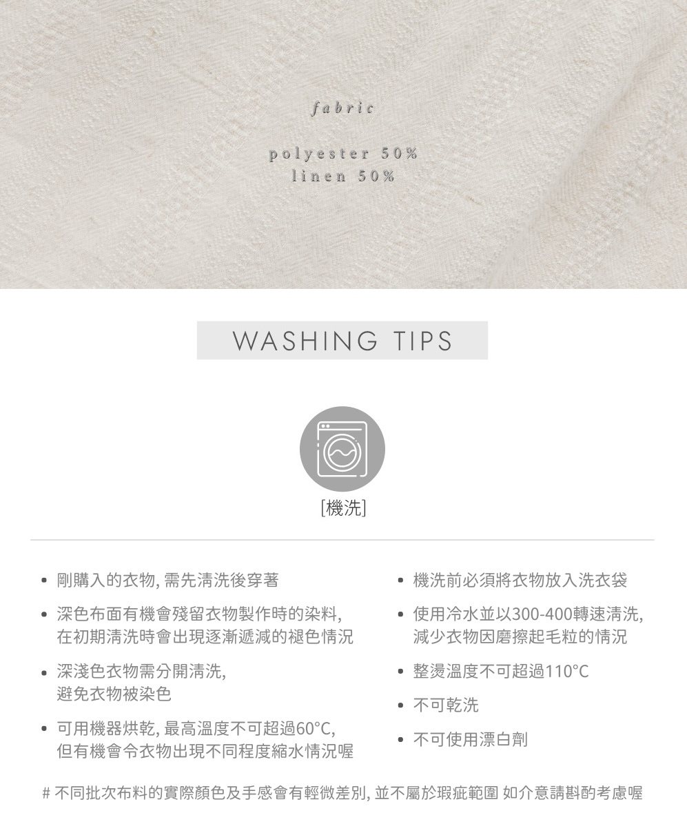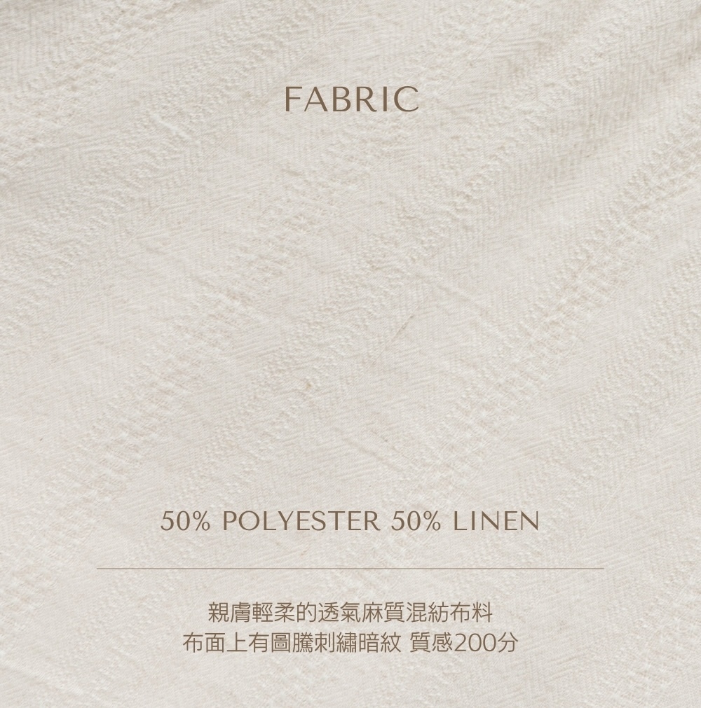 ⋄ 親膚輕柔的透氣麻質混紡布料