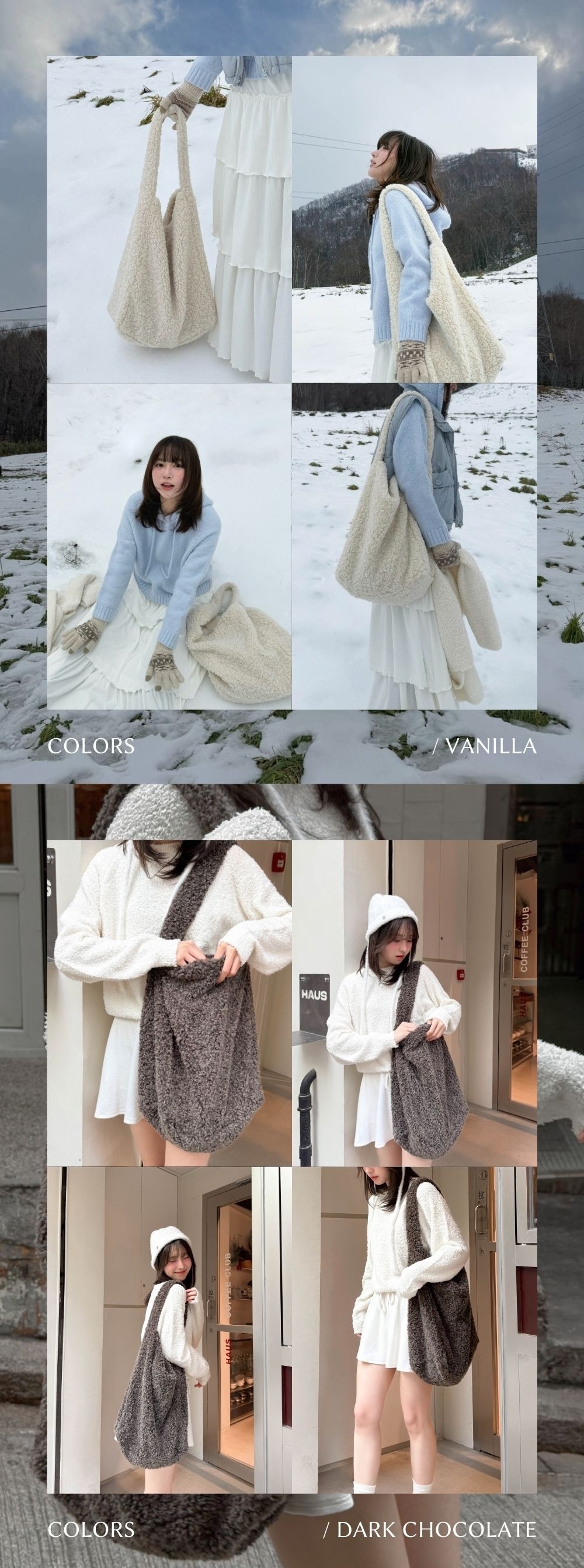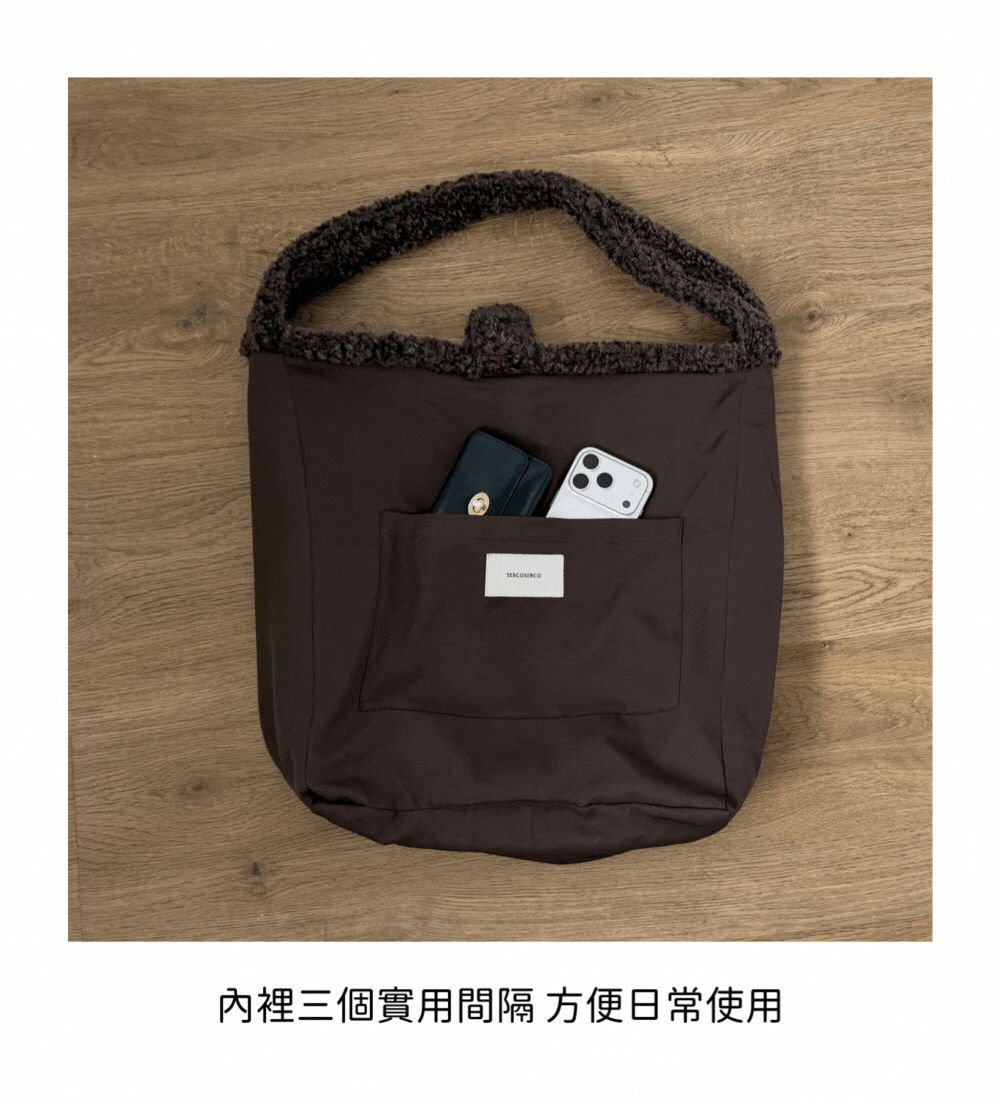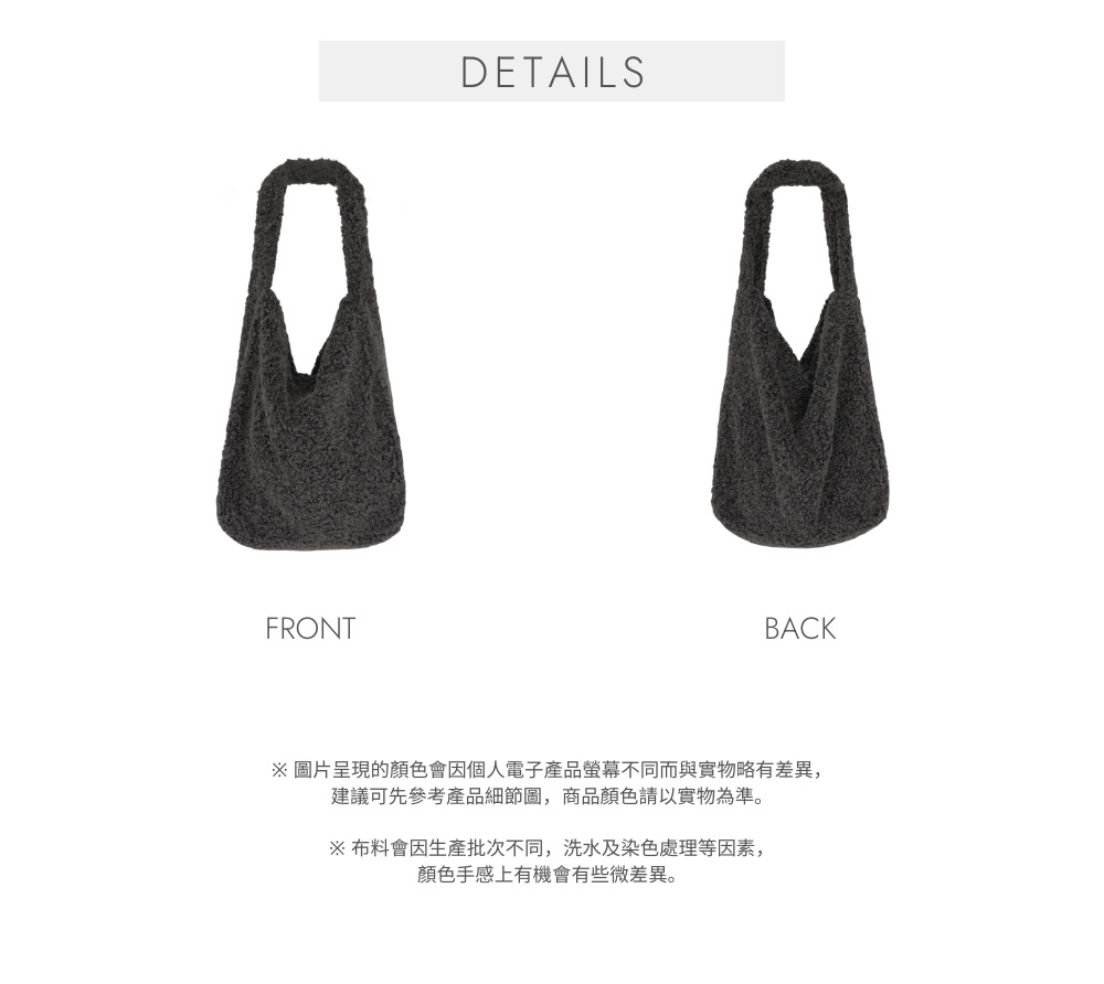 中等厚度 / 極鬆軟卷毛材質 / 大容量tote bag / 自重輕盈 只有0.44kg / 磁石啪扣開合