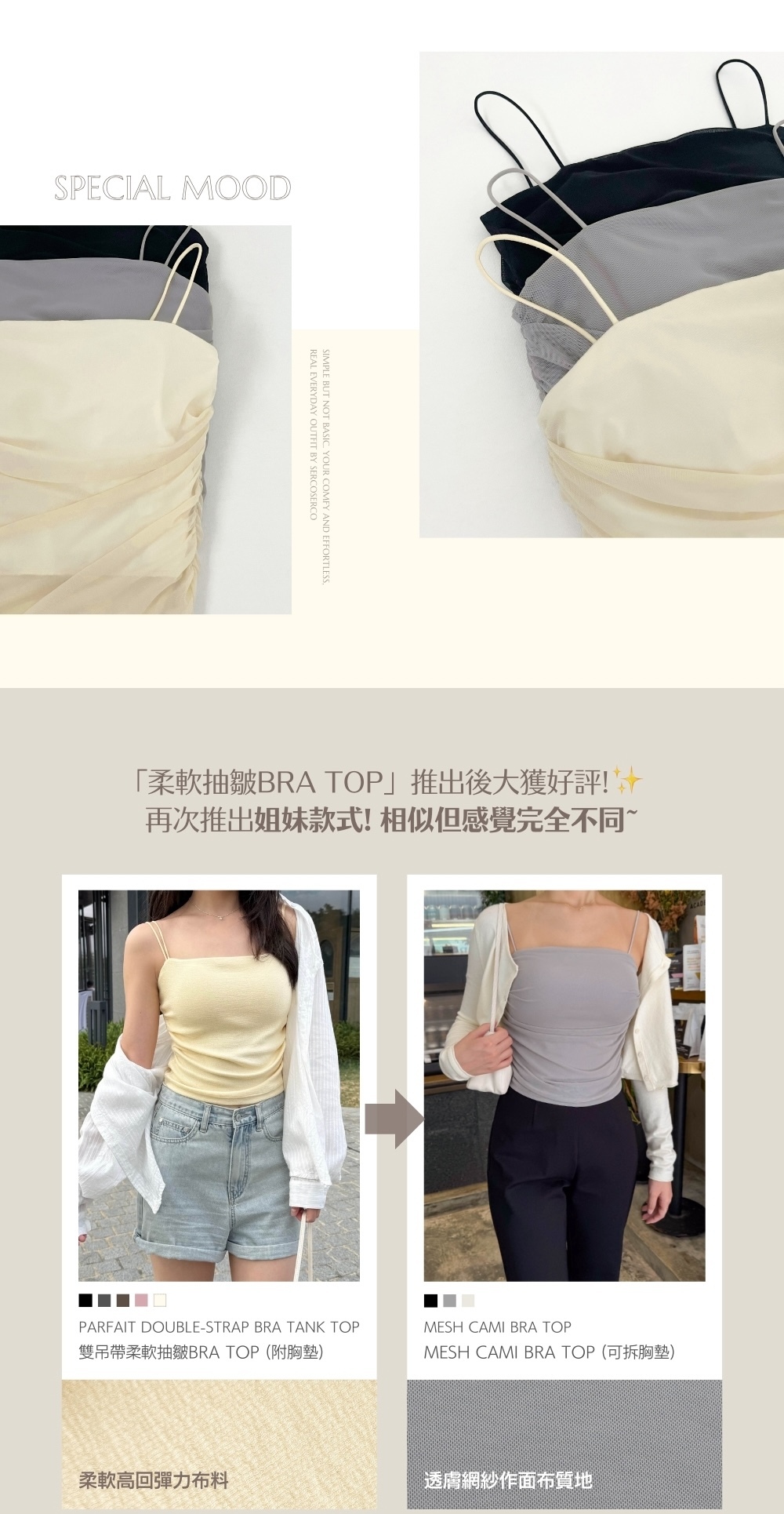 它與店內熱賣的「柔軟抽皺BRA TOP」