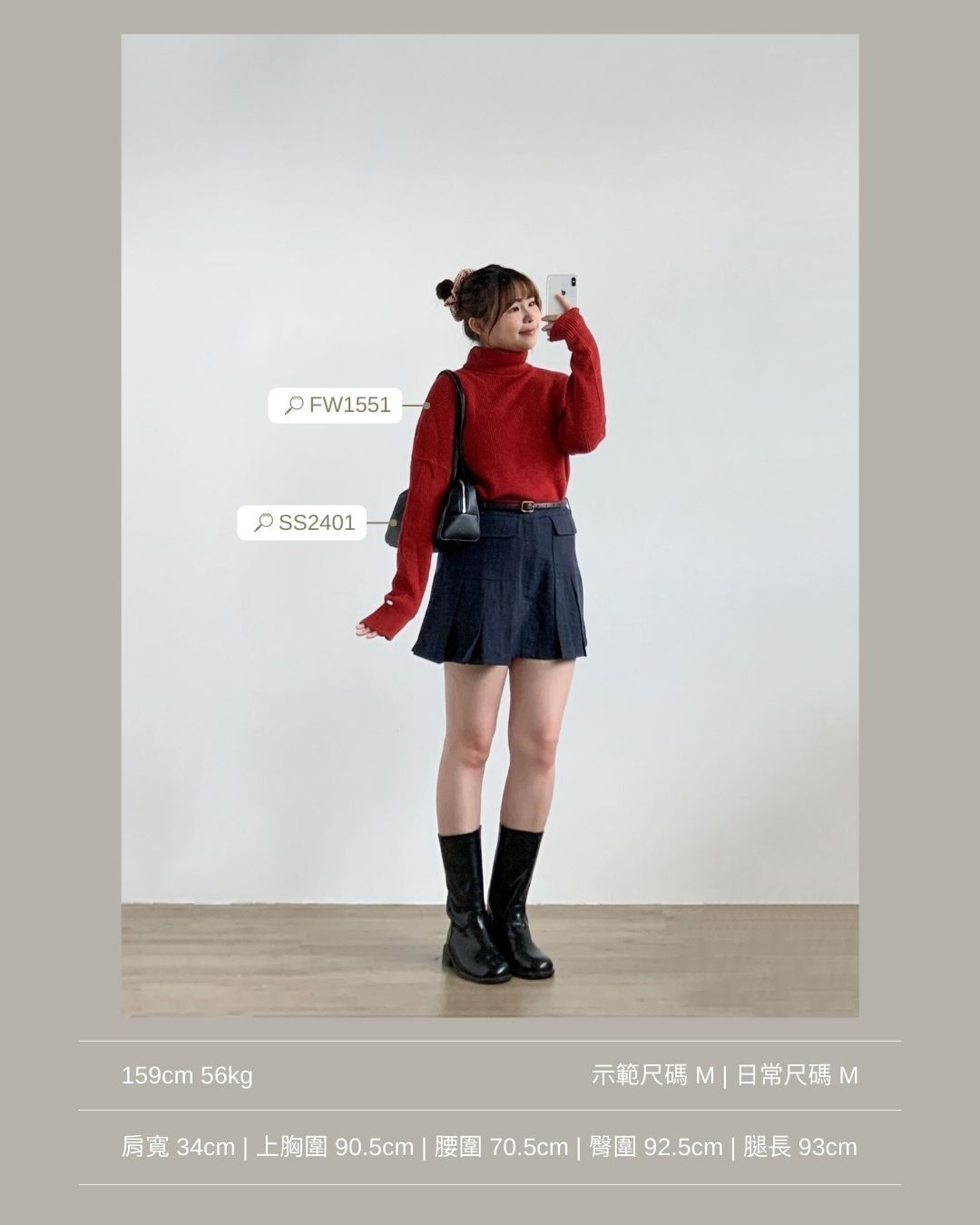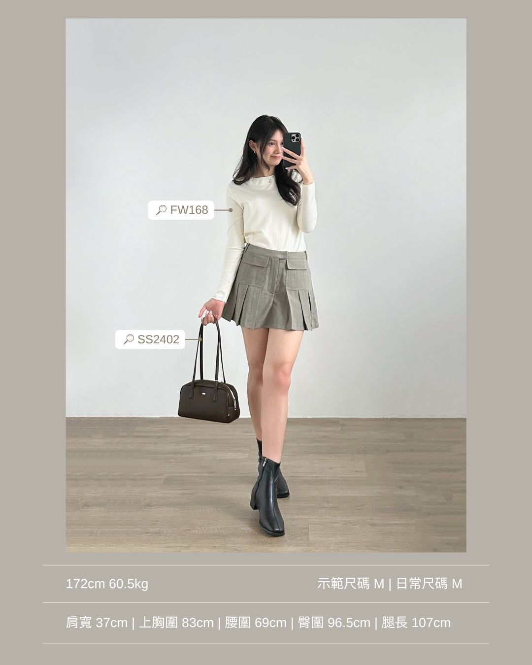 薄款 / 輕盈挺版親膚材質 / 中腰A字版型 / 正面拉鍊開合 / 半百褶設計 /