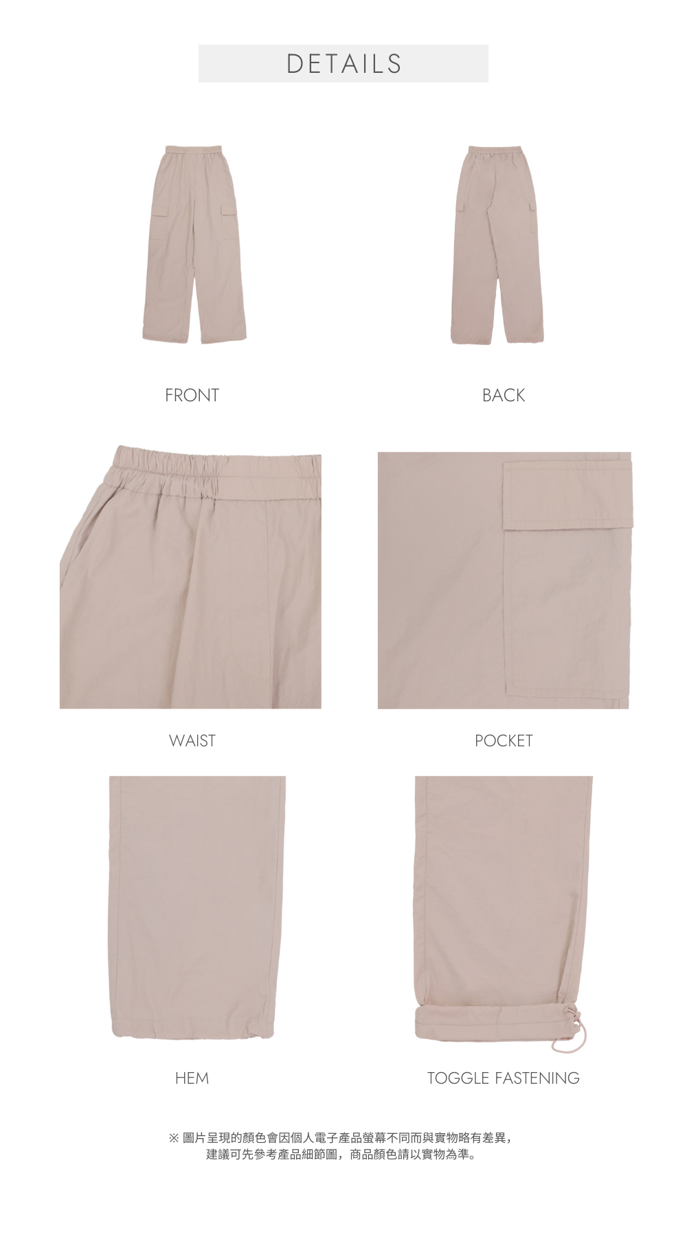 ⋄ 褲腳為隱形束口設計 可束腳/直腳兩穿