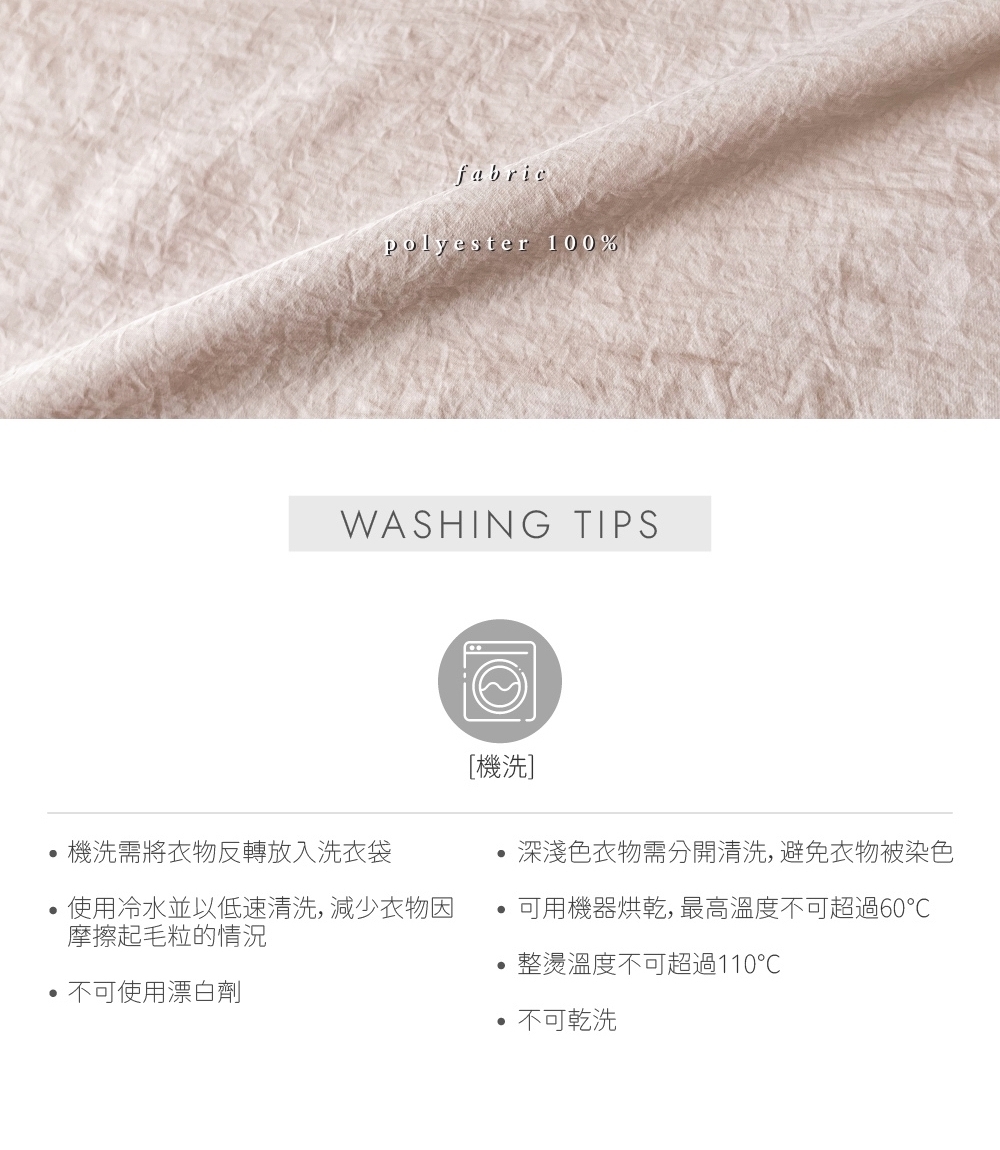 可用機器烘乾,最高溫度不可超過60˚C