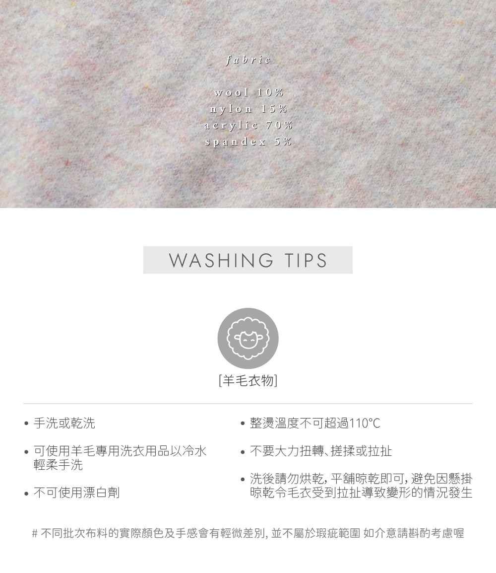 中等厚度 / 挺版輕盈針織織片 / 10%wool / 品牌logo愛心小銀牌
