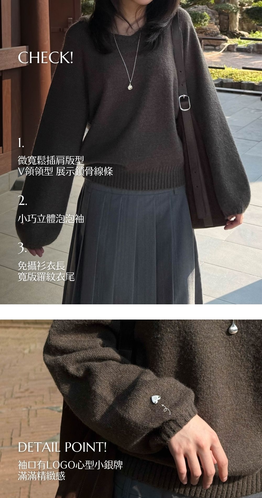 微寬鬆插肩版型 / v領領型 / 展示鎖骨線條 /