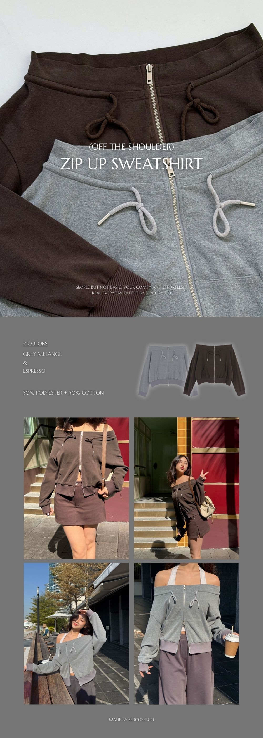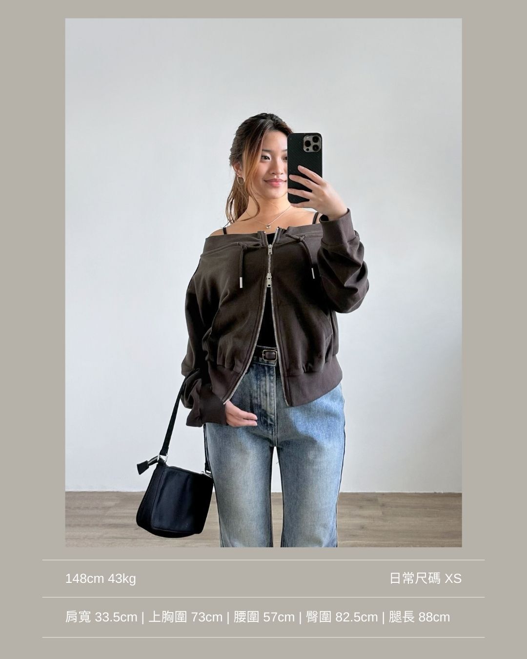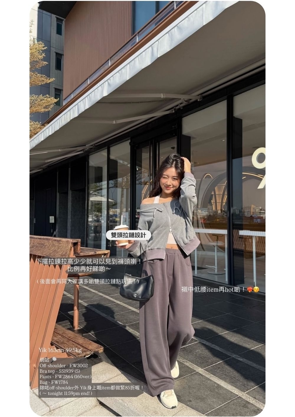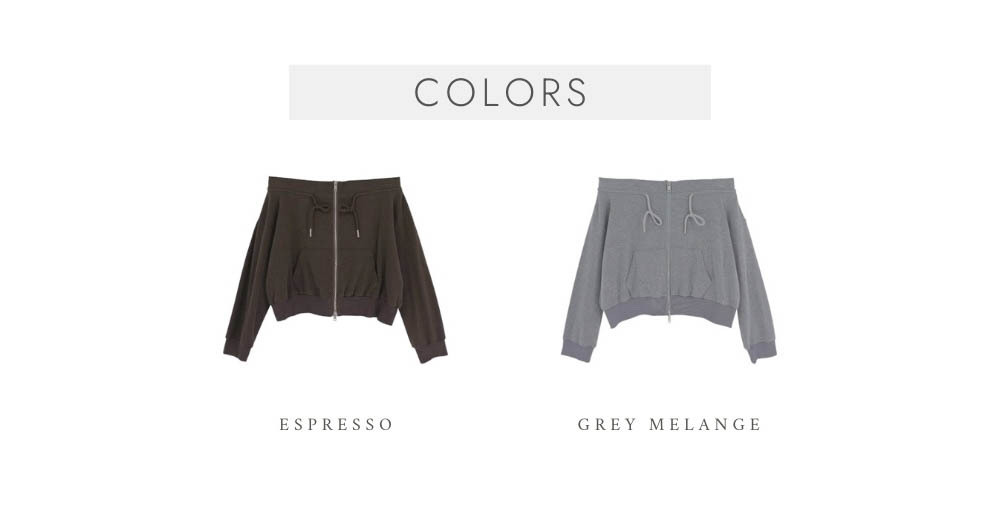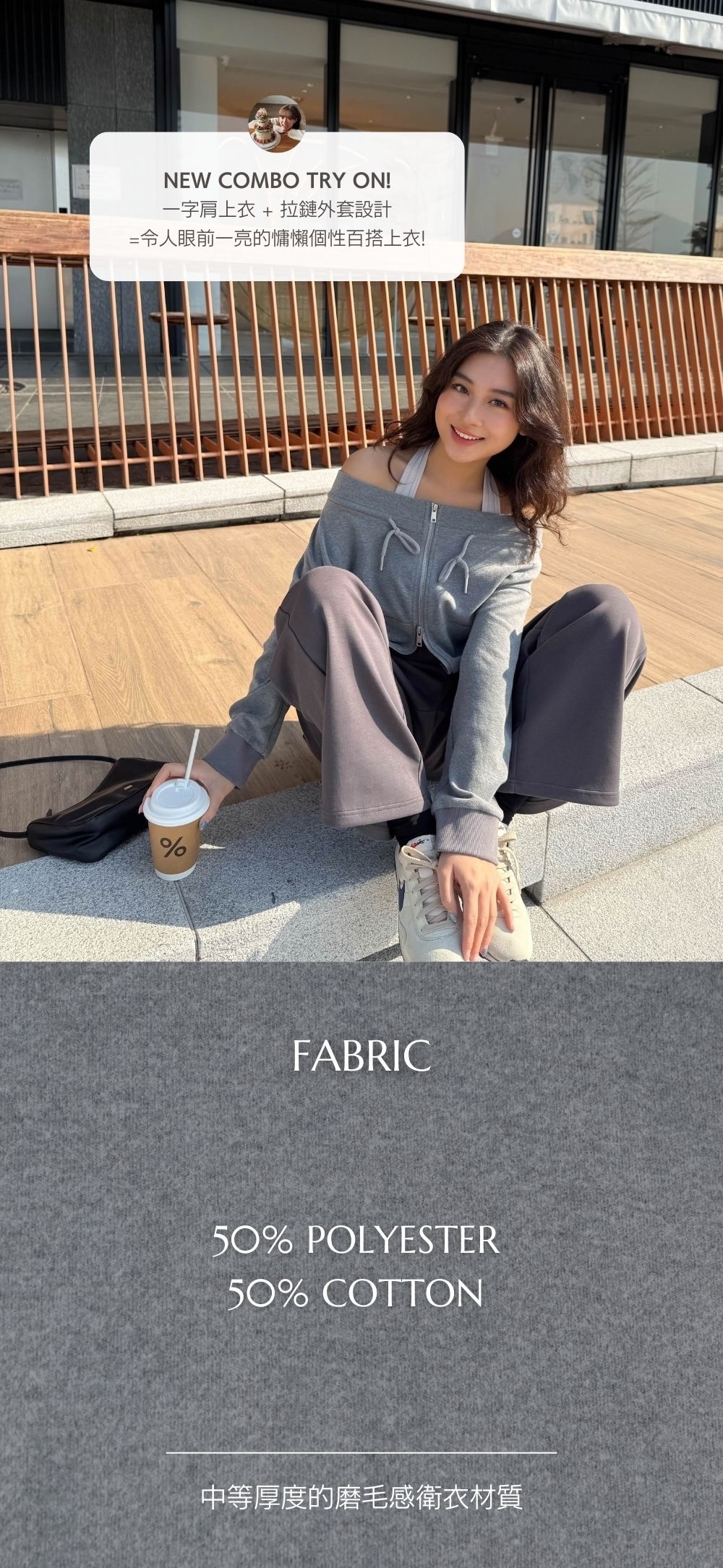 結合了一字肩上衣 + 拉鏈衛衣外套