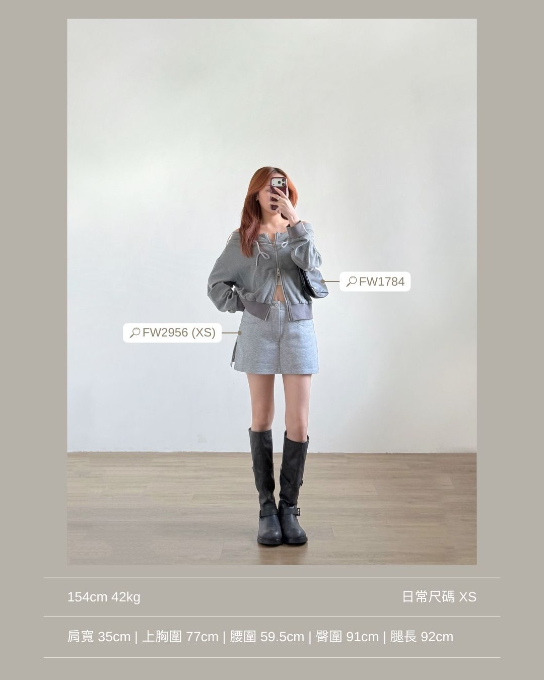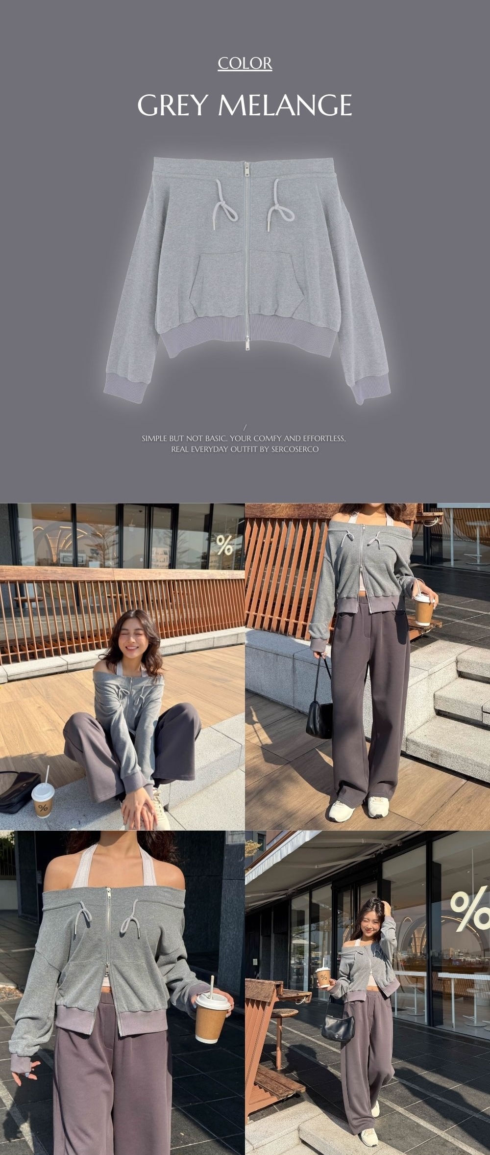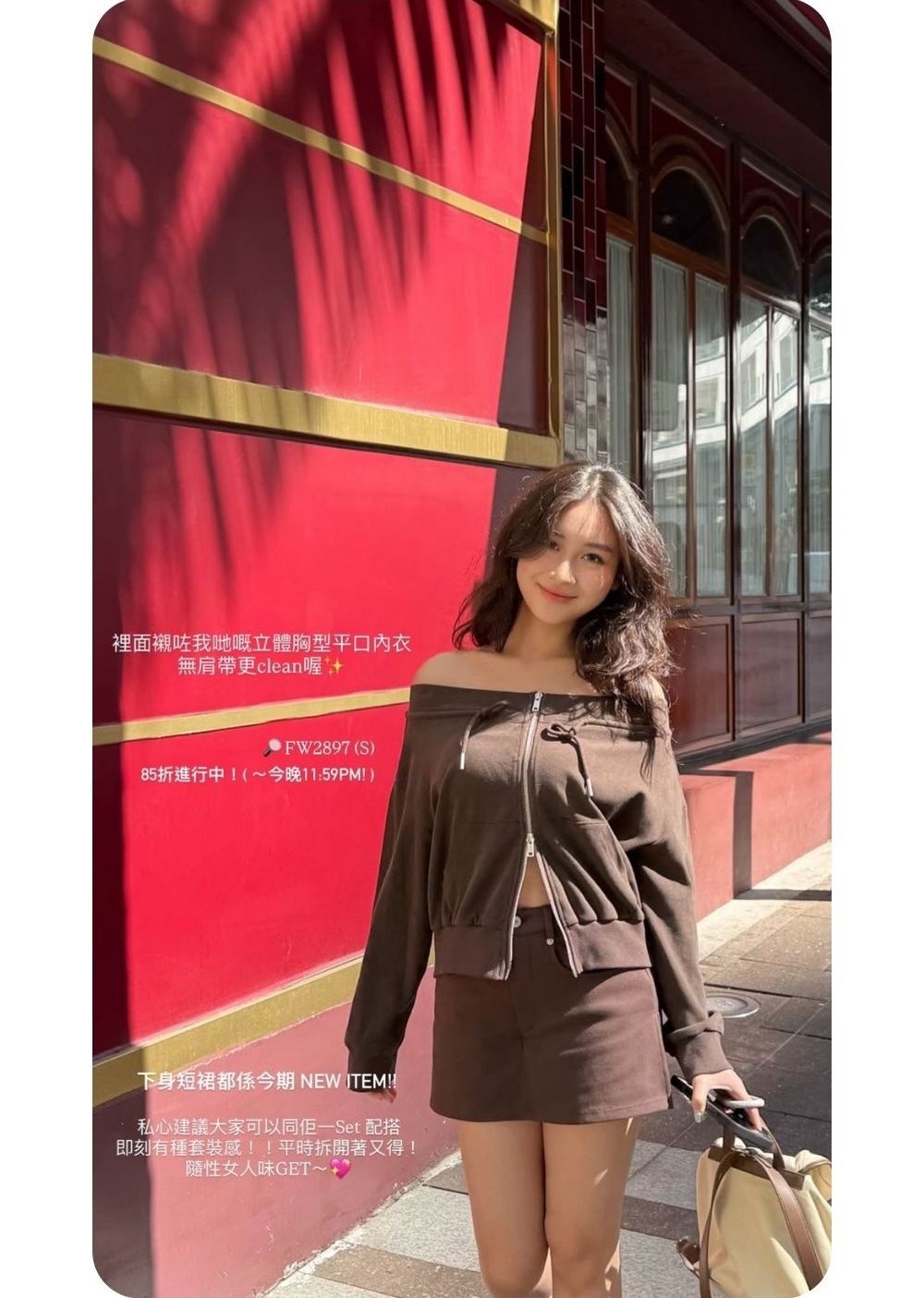 結合了一字肩上衣 + 拉鏈衛衣外套