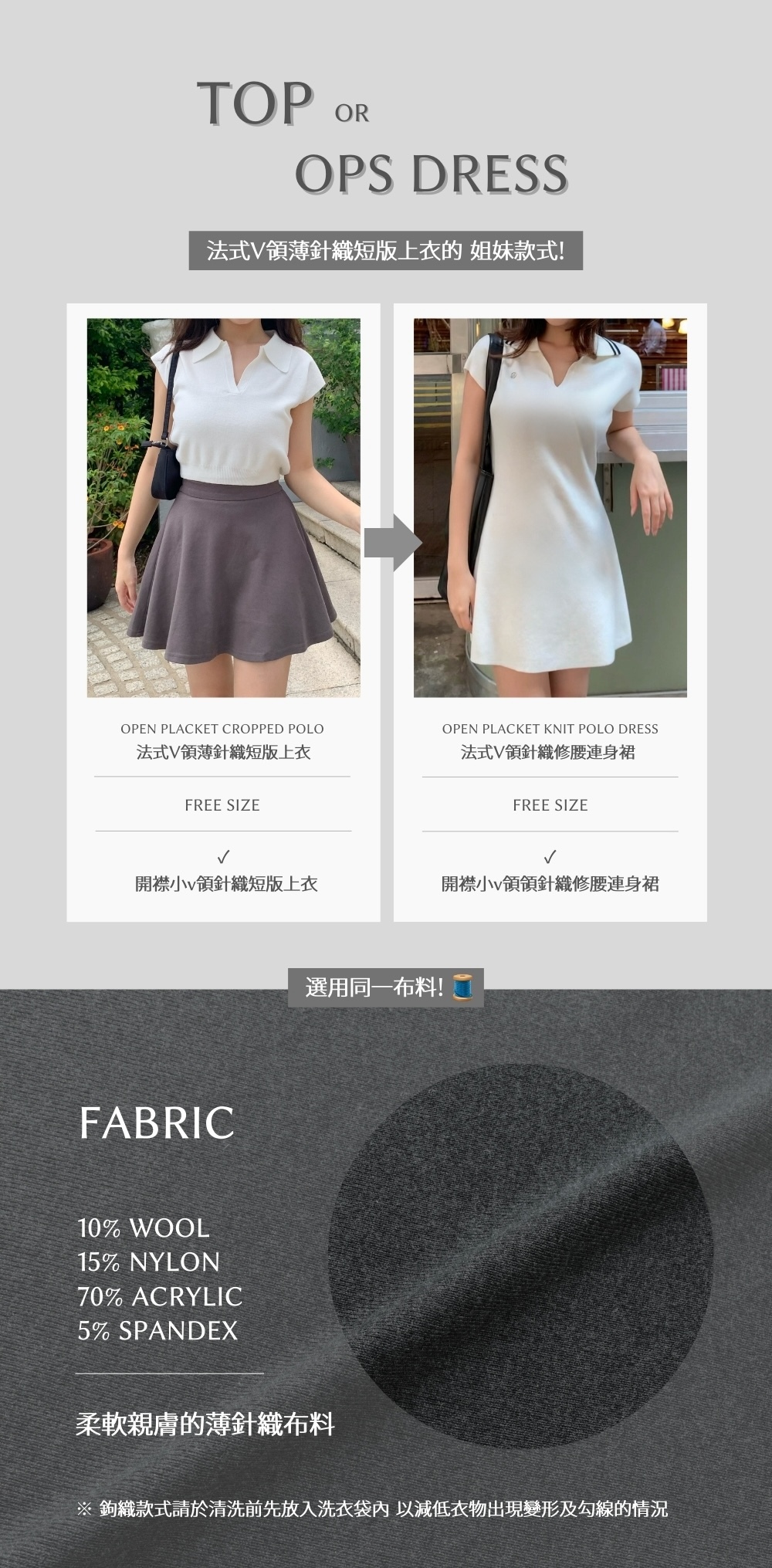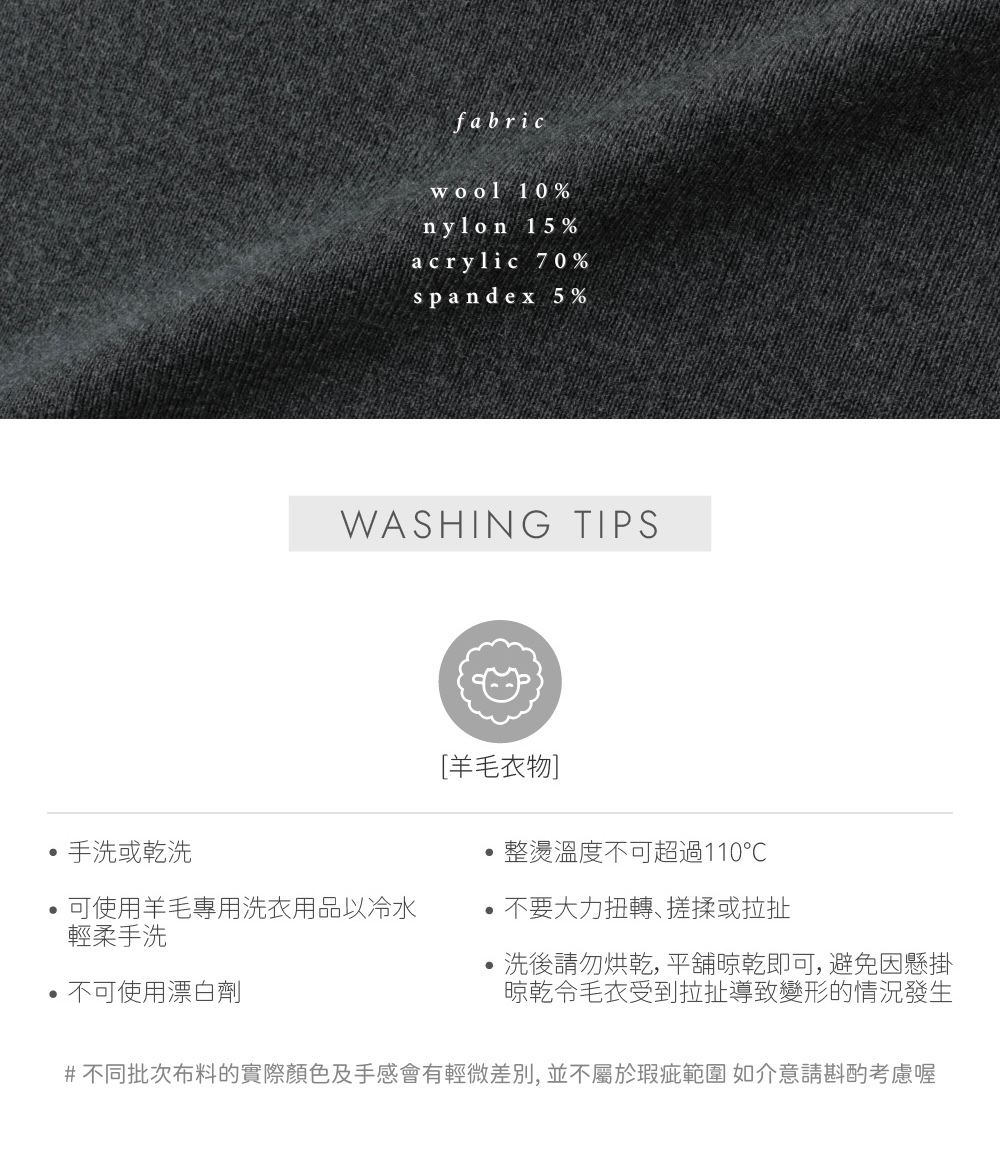 ⋄ 柔軟親膚的薄針織布料 10%wool增添布料質感