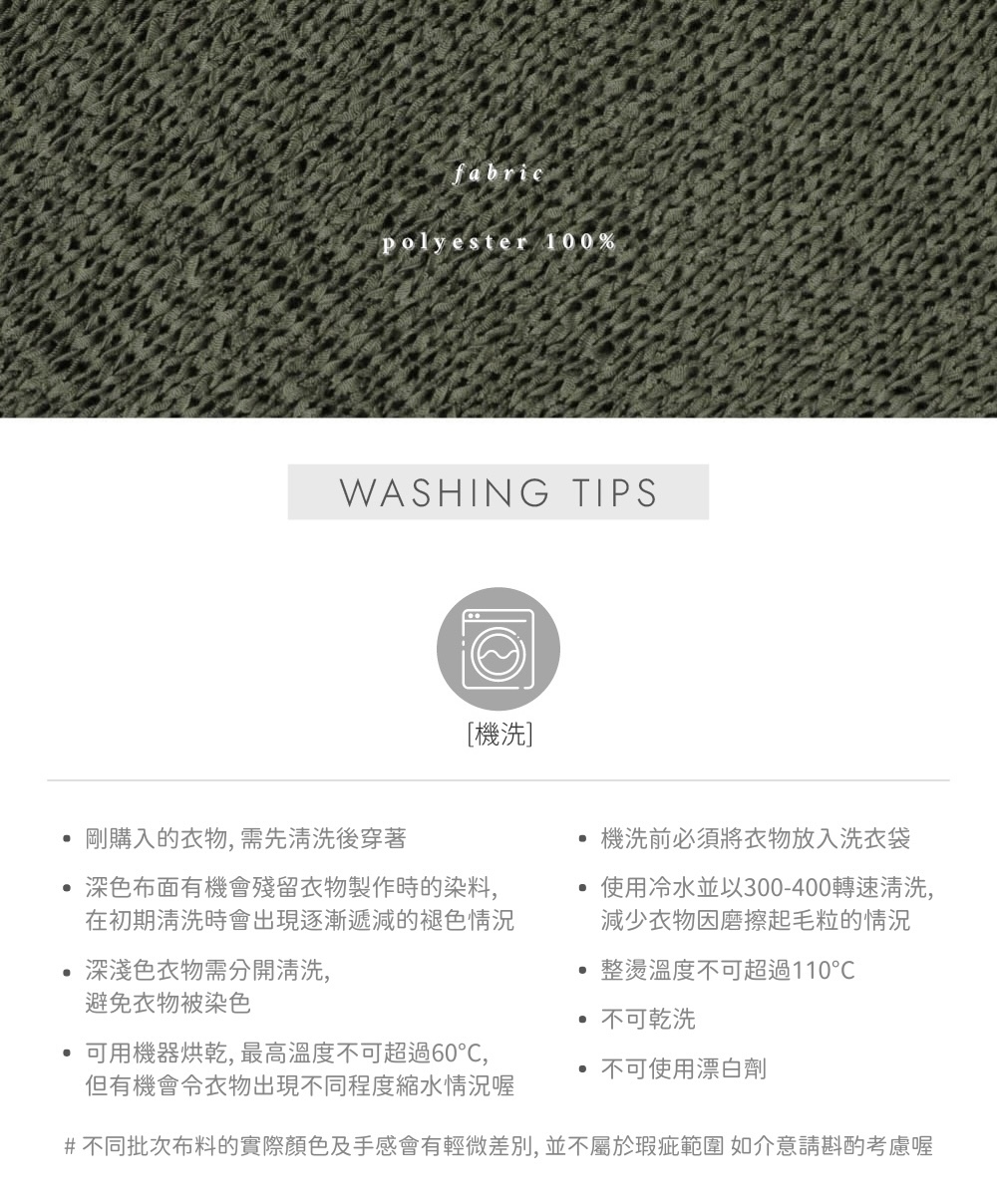 ※ 建議以折疊方式作日常收納,清洗前必須先放入洗衣袋,以減少拉扯而導致的變形情況喔