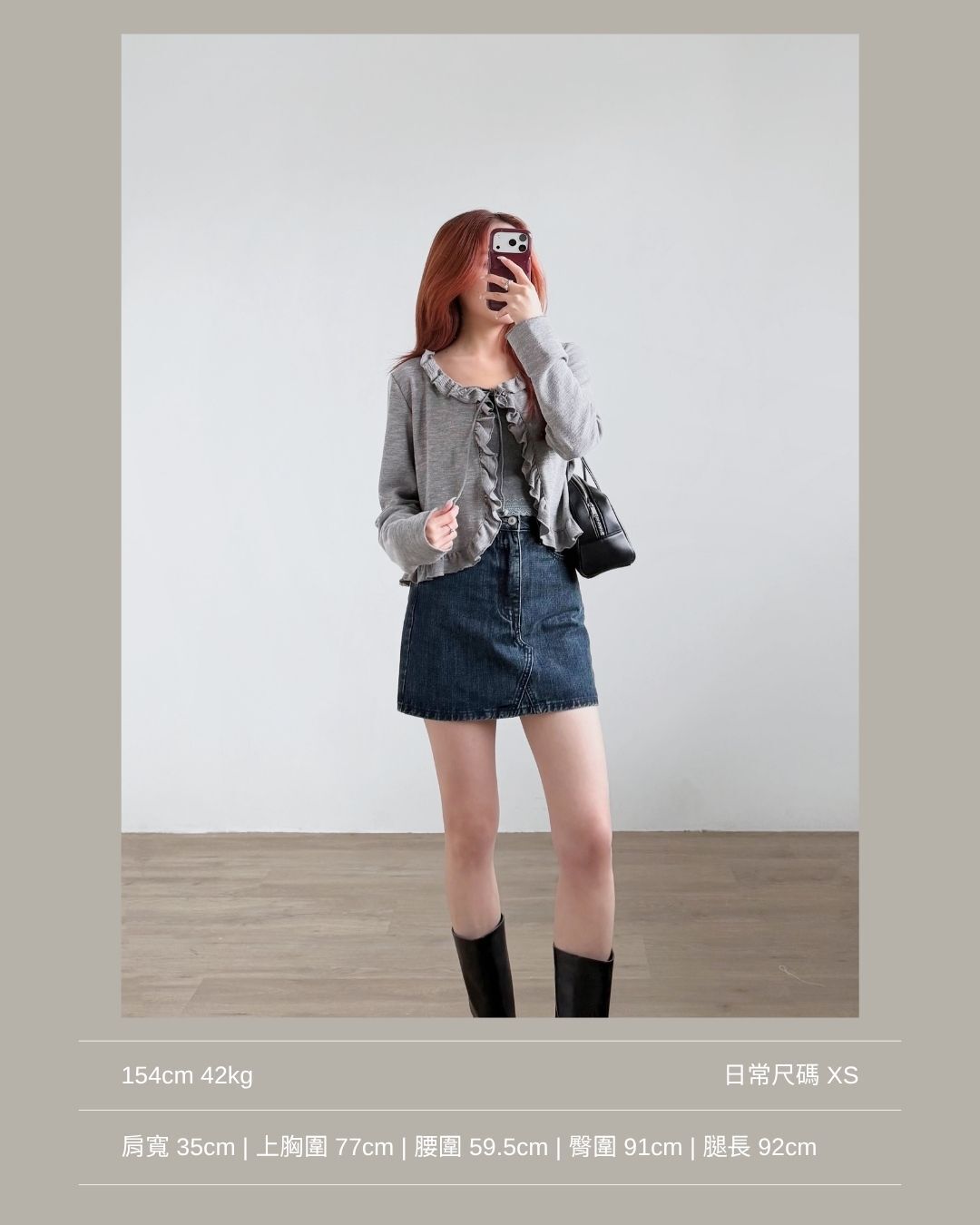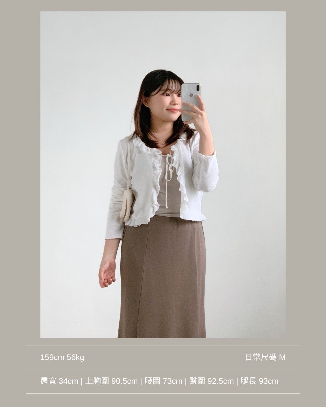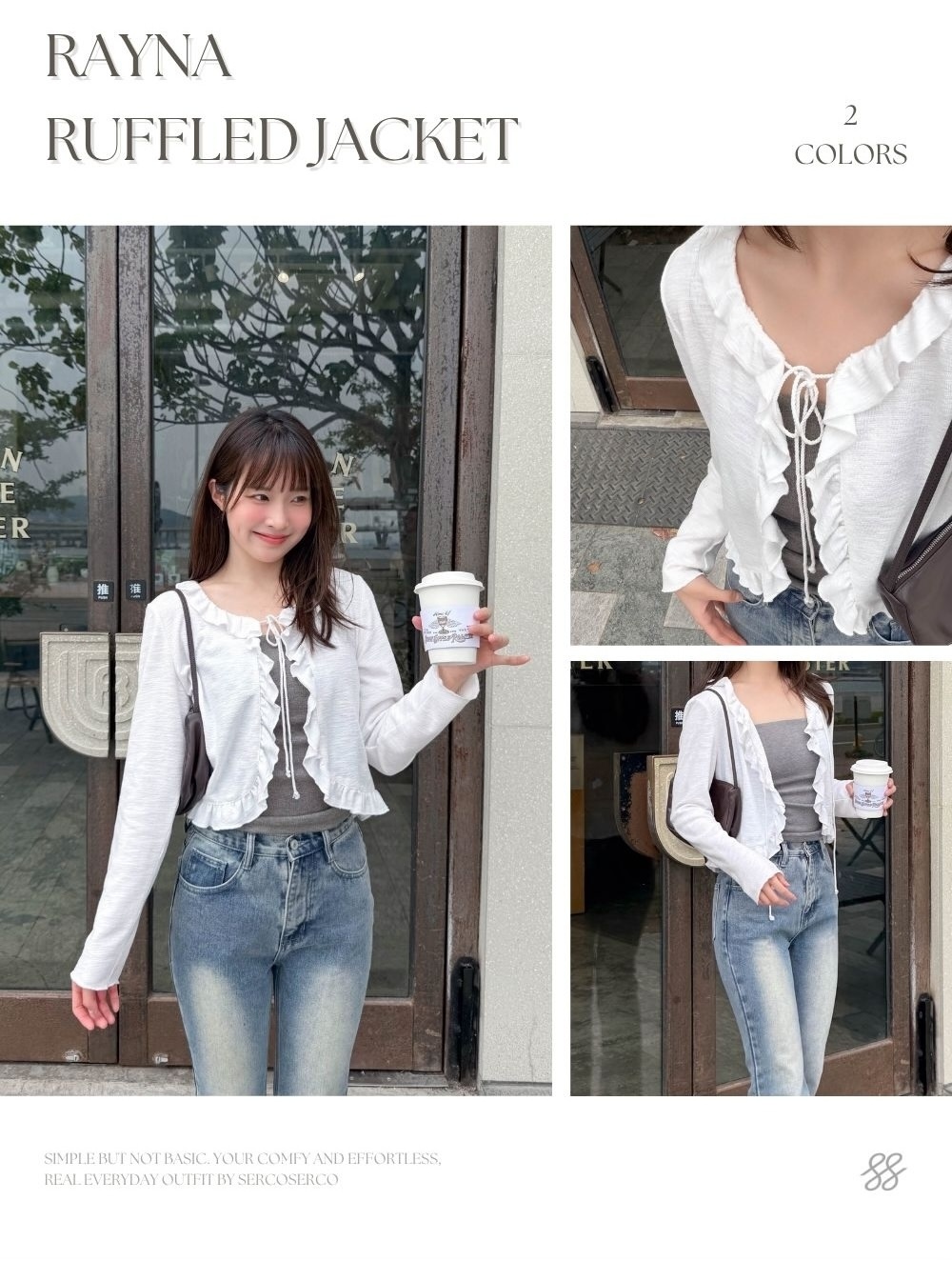 微寬鬆正肩版型 / 適合任何身形 / 立體寬荷葉邊衣領 / 手袖木耳邊點綴 / 顯瘦效果max