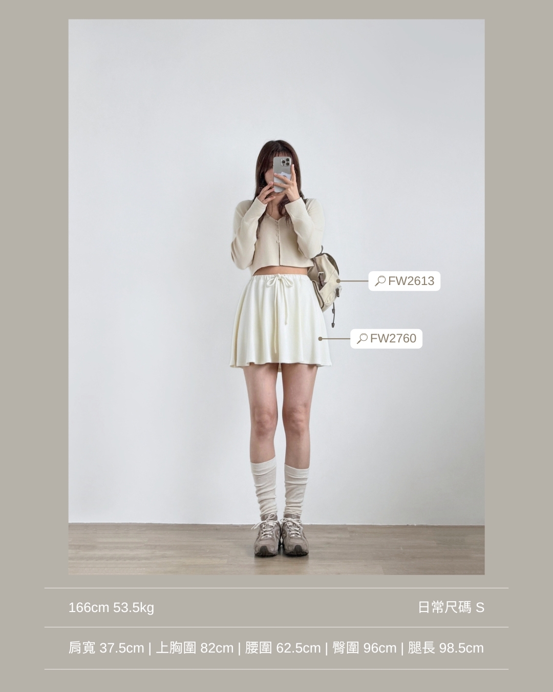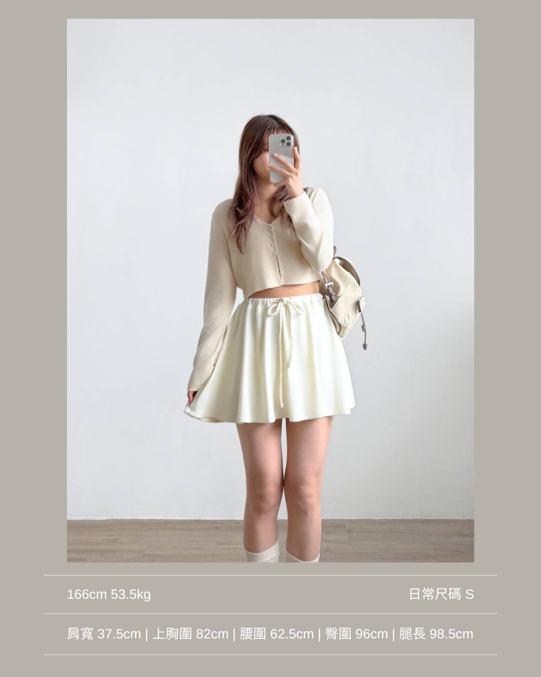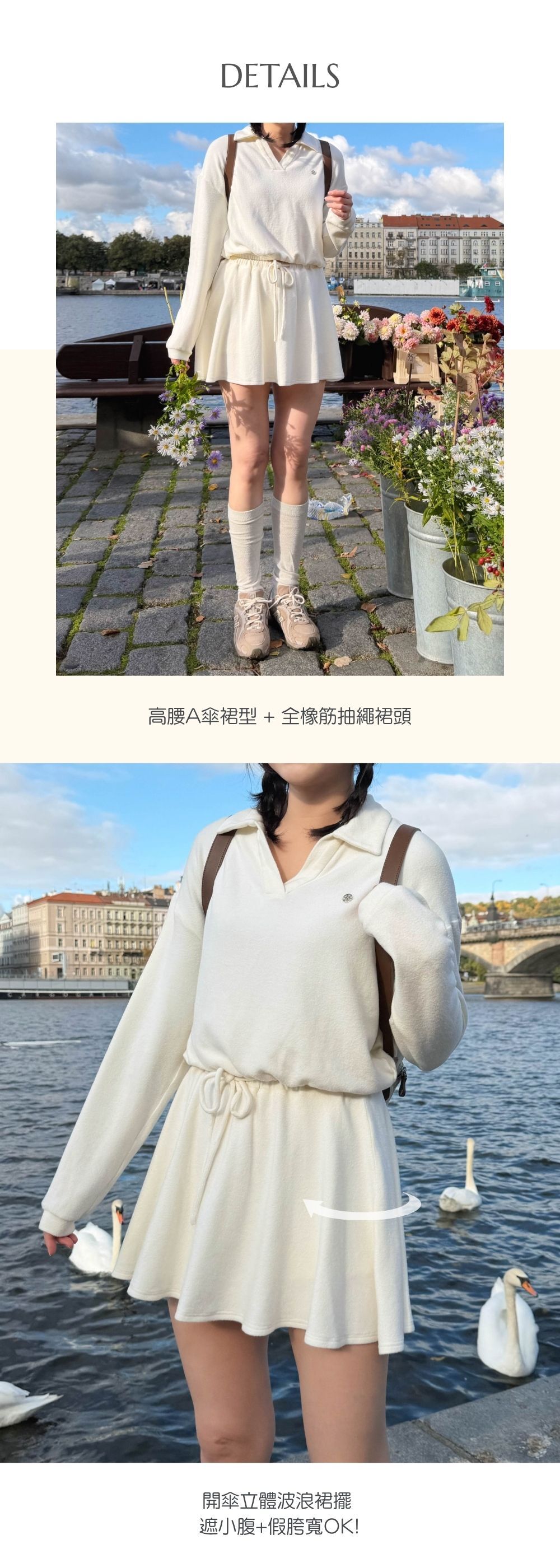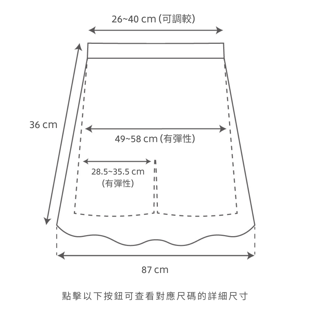 高腰A傘裙型 / 全橡筋抽繩裙頭 / 波浪裙擺 / 遮小腹 / 修飾假跨寬 / 顯大腿幼