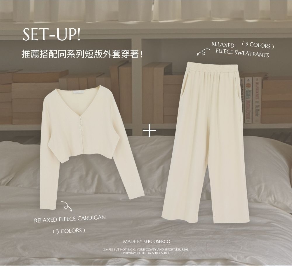 推薦與「RELAXED FLEECE超親膚V領短版外套」整套穿著
