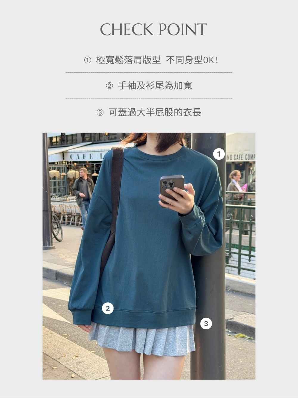 落肩寬鬆的設計 蓋過大半屁股的衣長