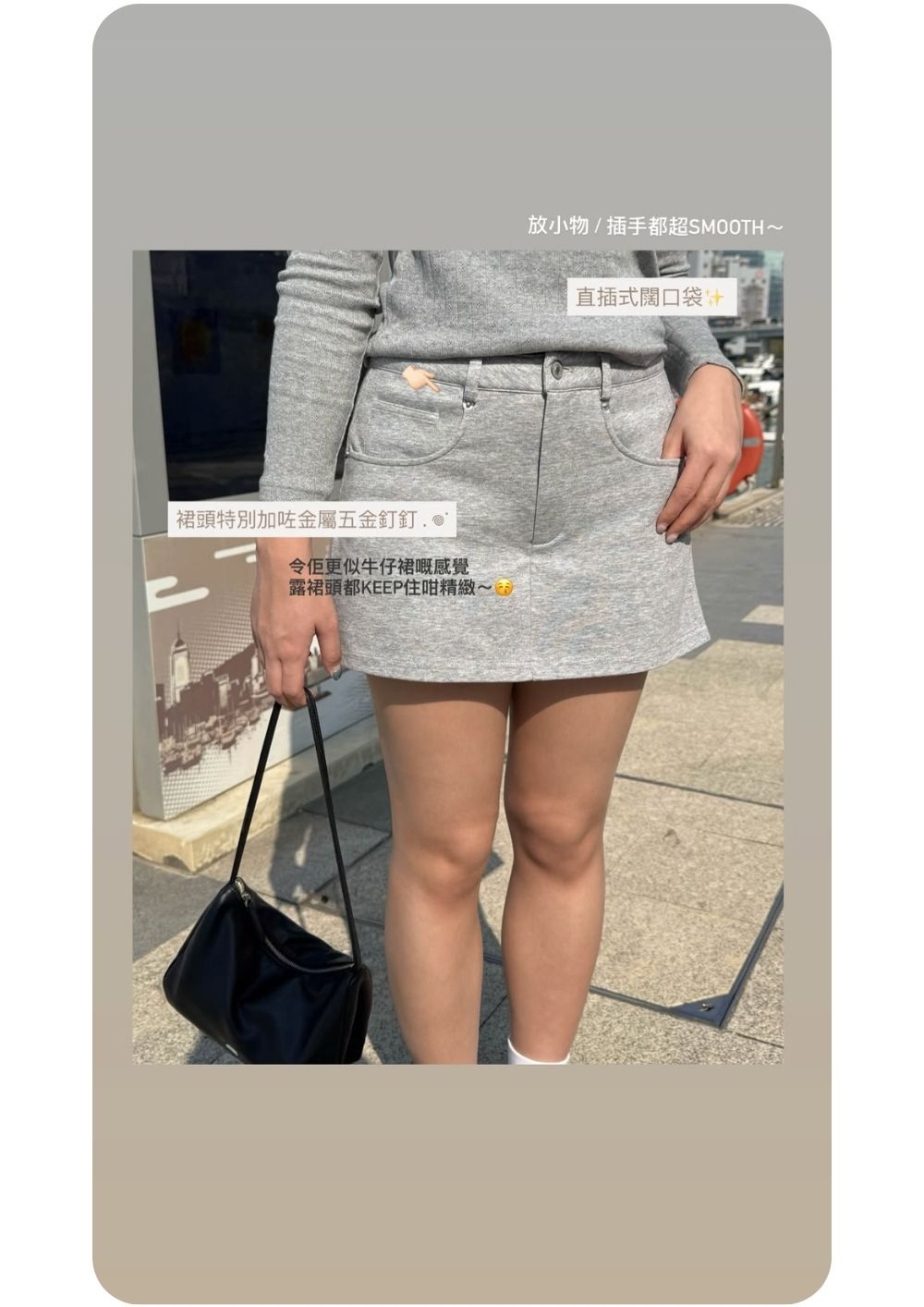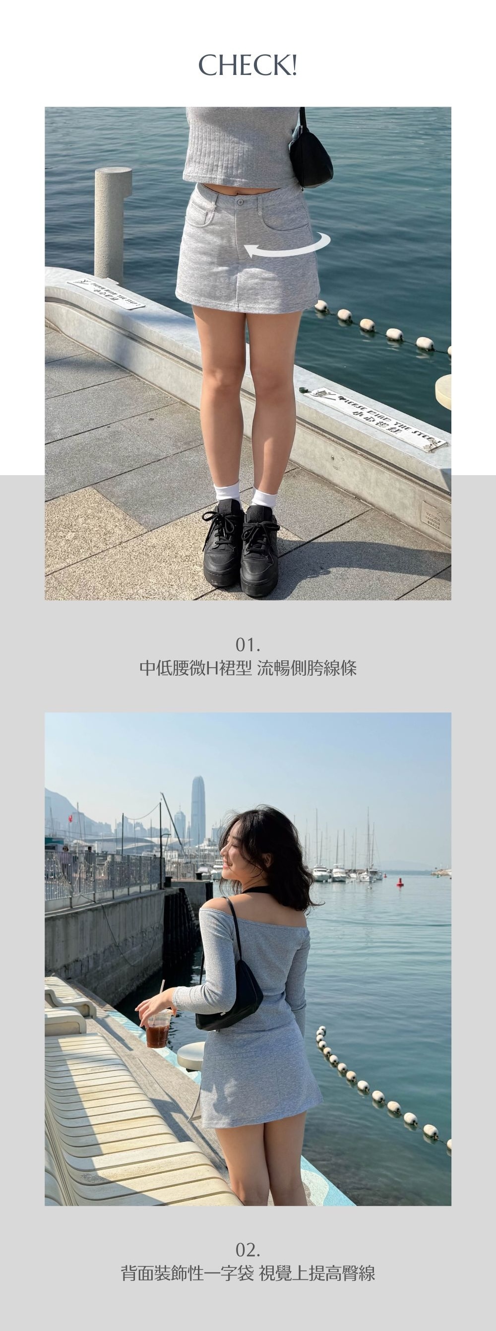 中低腰微H裙型 / 流暢側胯線條 / 裝飾性一字袋 /