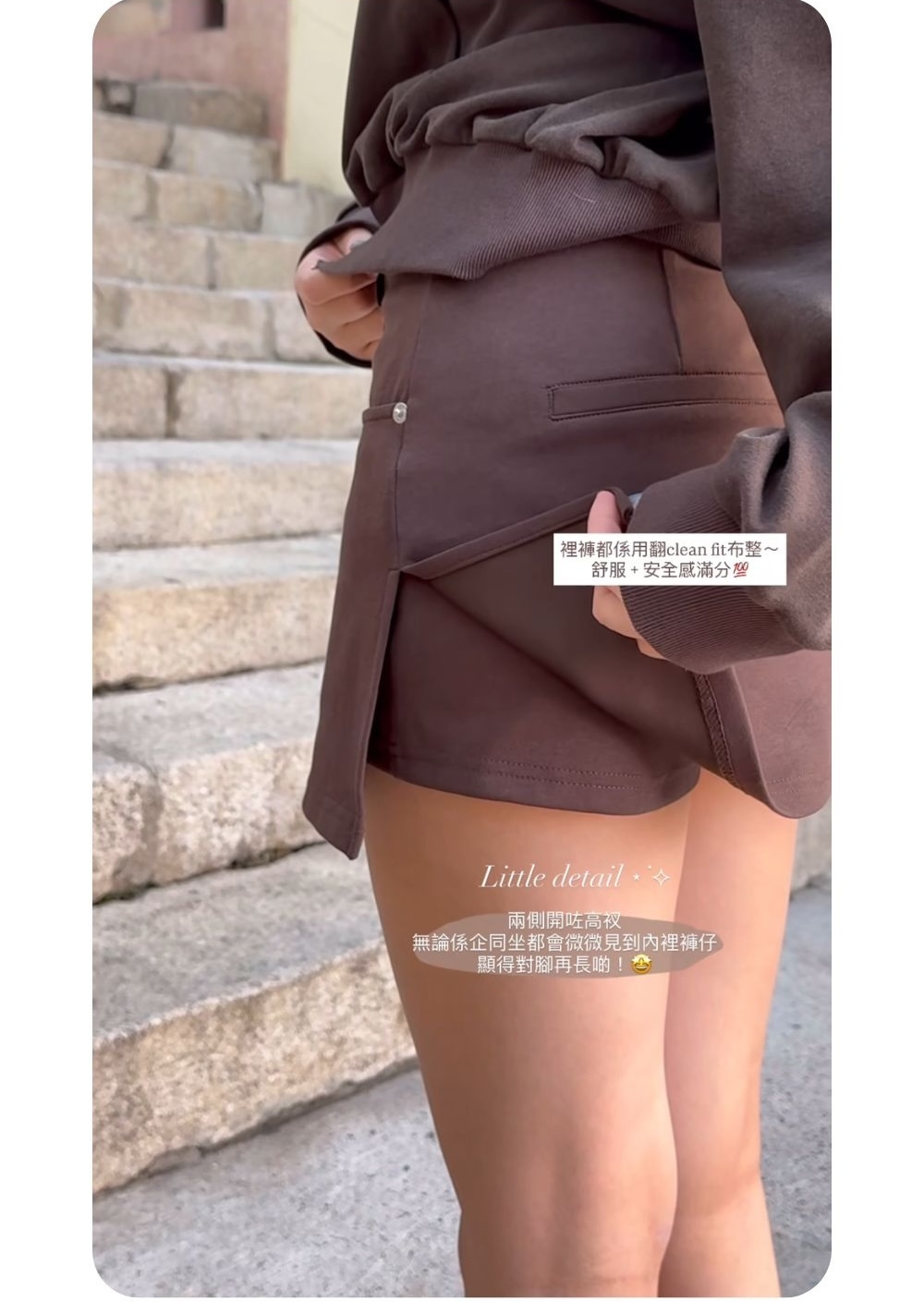 提高臀線 / 不顯臀型 / 兩側高開衩設計