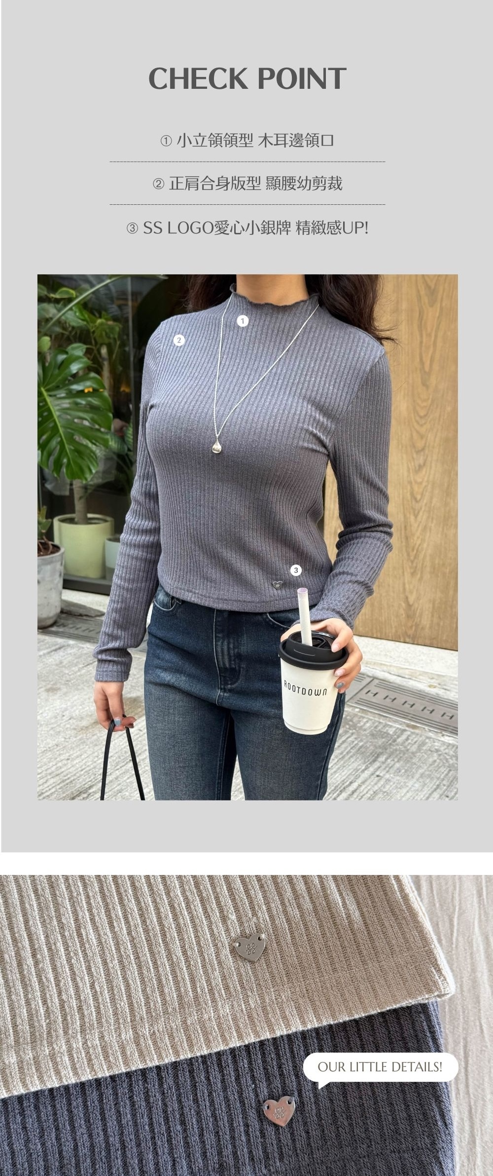 正肩合身版型 / 木耳邊領口 / 小立領領型