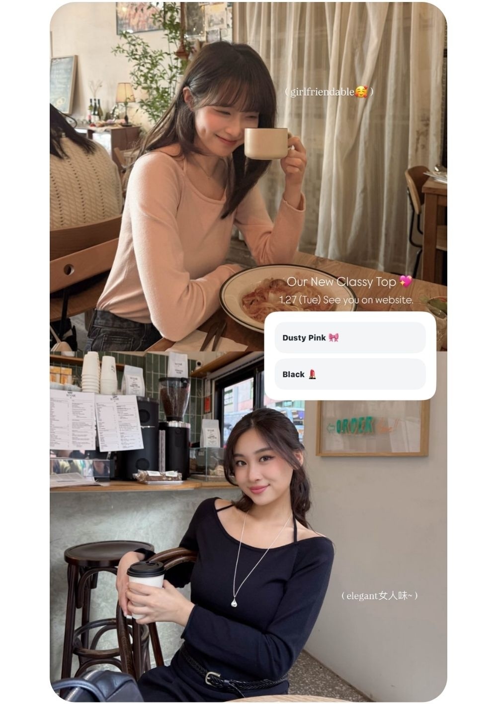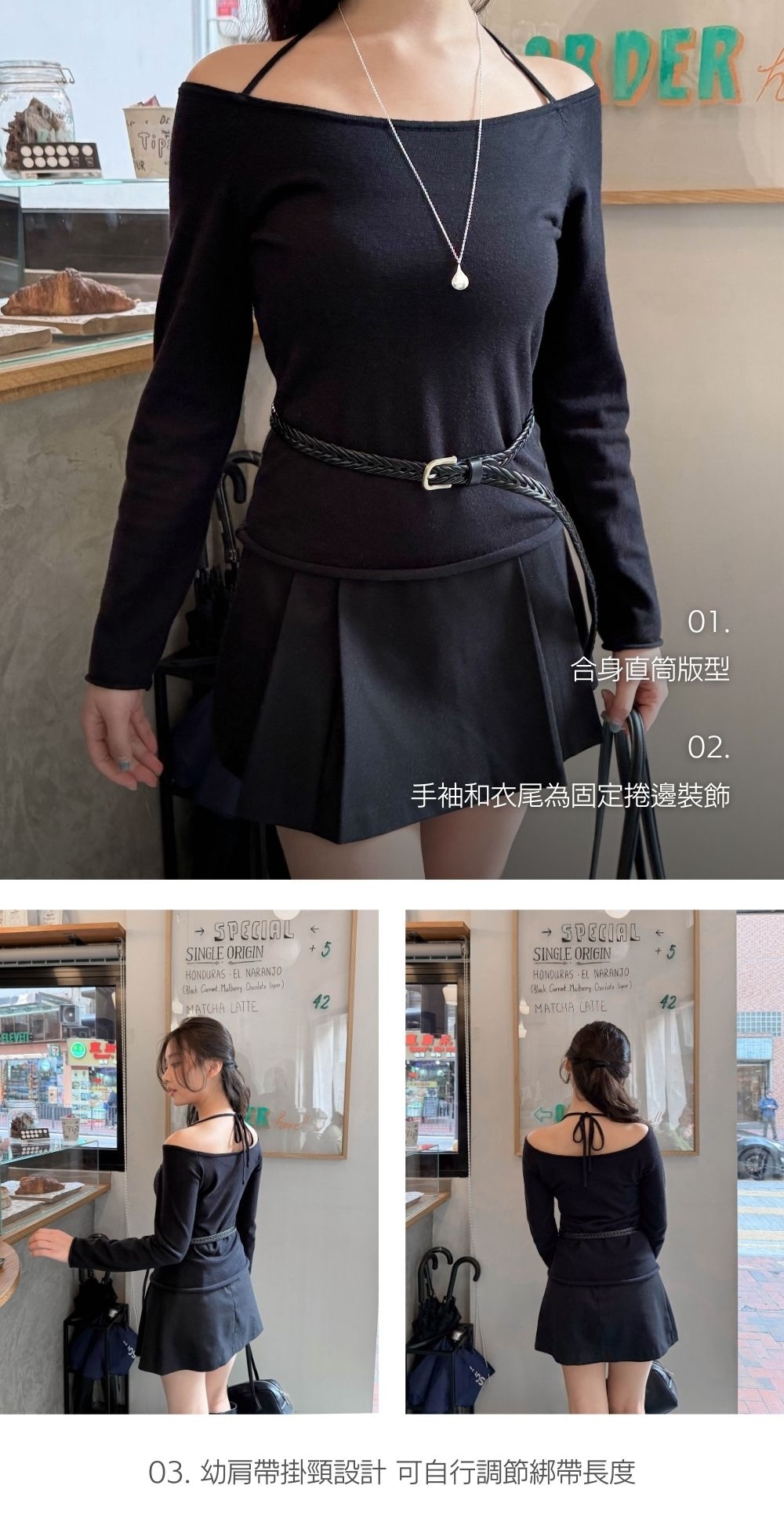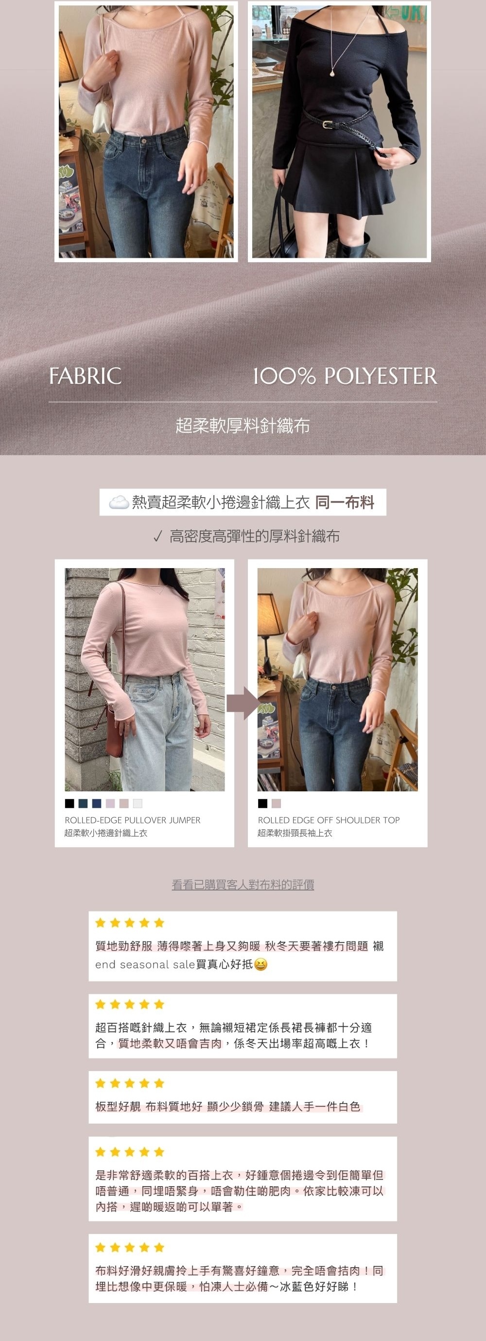 中等厚度 / 超柔軟厚料針織布 / 可大字領或一字領穿著 /