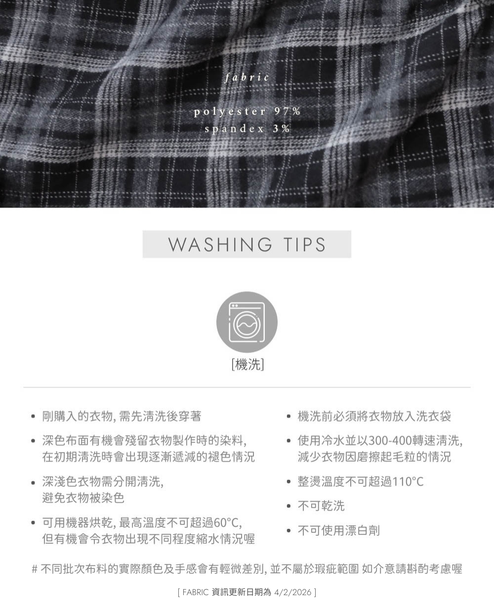 中等厚度 / 冬日感磨毛布料 / 黑白菱格格紋 / 全橡筋腰裙頭 / 柔滑親膚內裡