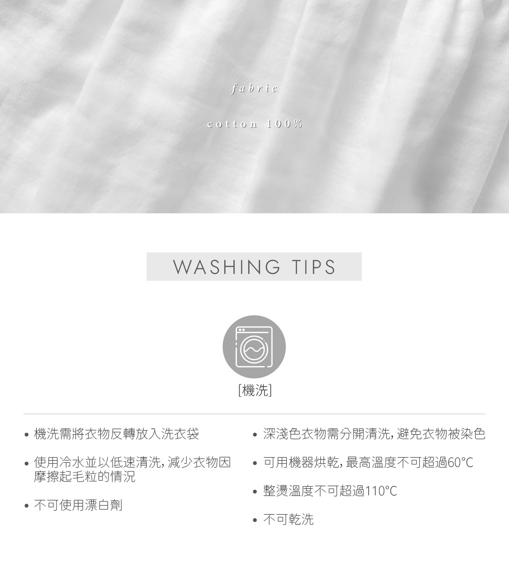 ⋄ 透氣輕柔的雙層棉紗布料 100%全棉