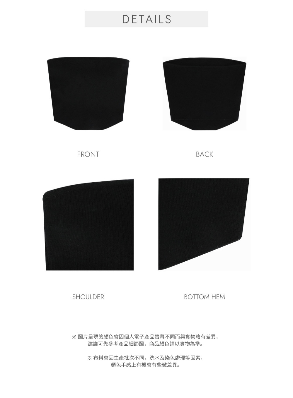 中等厚度 / 彈性羅紋針織布料 / 合身修腰版型 / 弧形領口 /