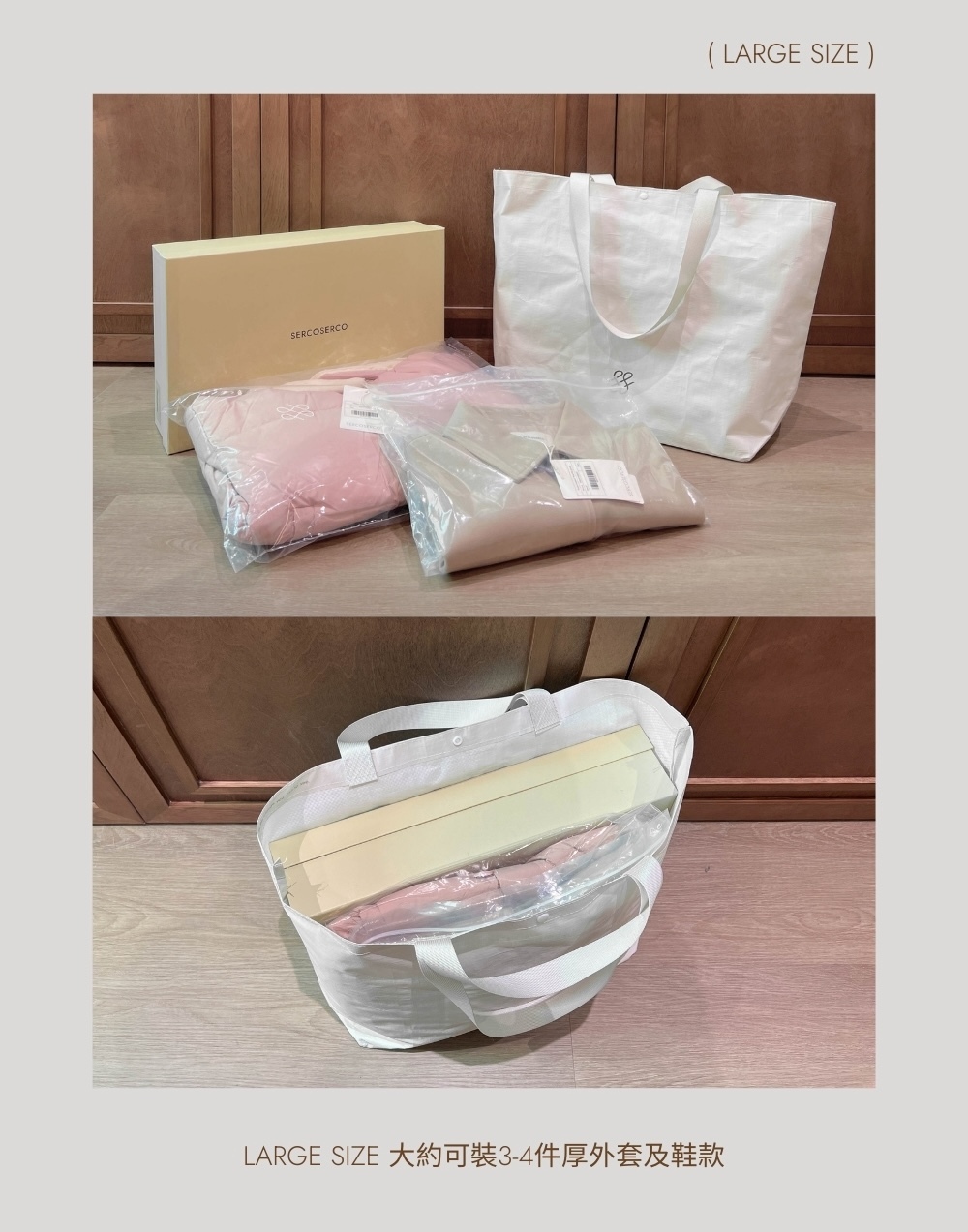 ⋄ large size大約可裝3-4件厚外套及鞋款