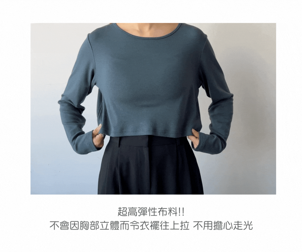 ⋄ 高延展性 衣尾不會因胸部而向上扯高