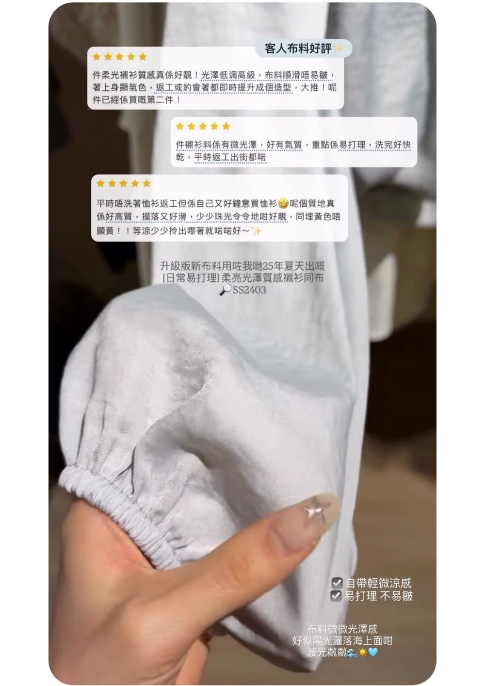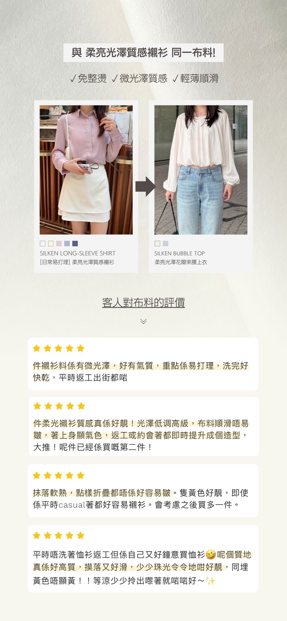 更換成自帶涼感 + 免整燙的緞面材質