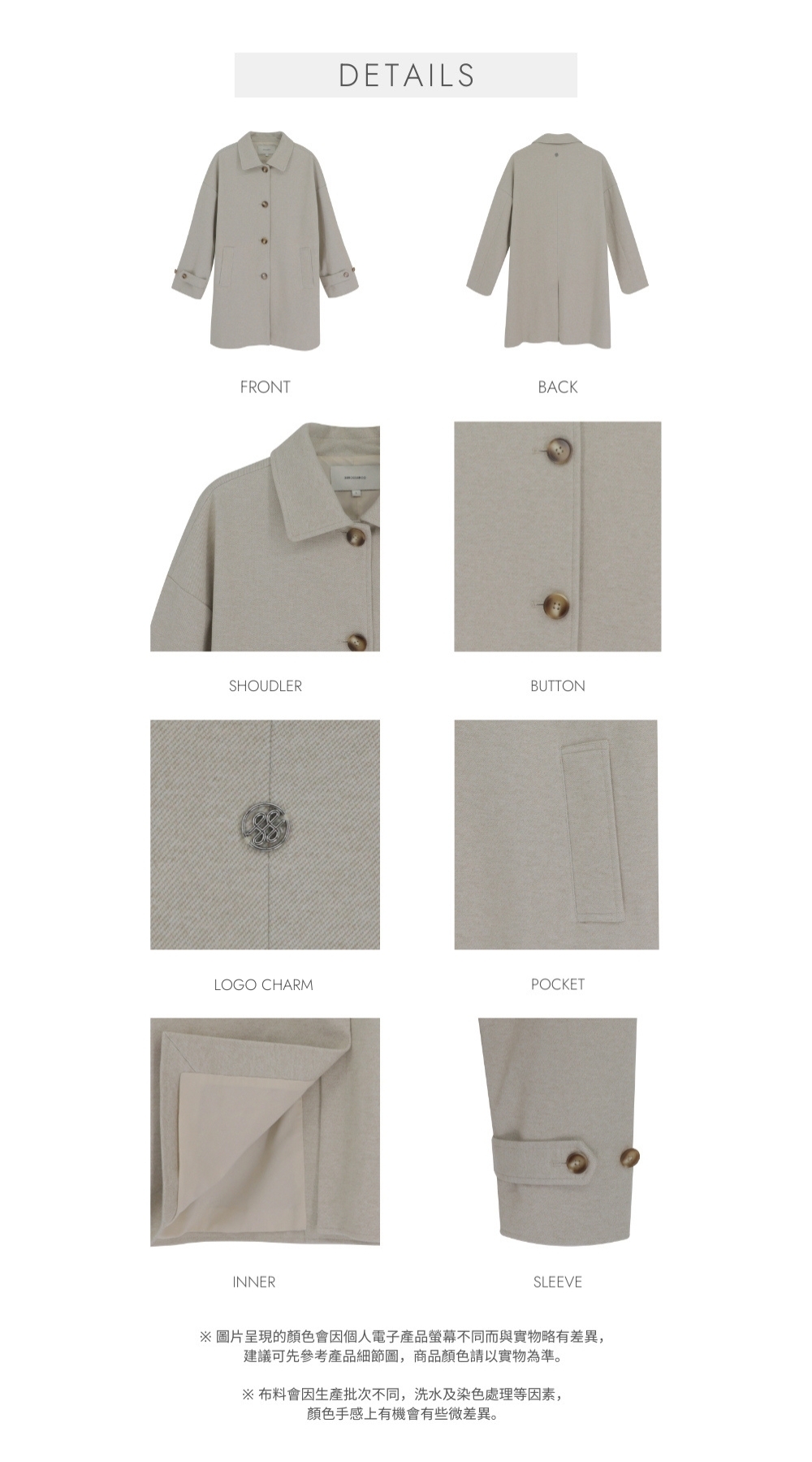 全扣鈕穿著像斗篷 有種可愛的娃娃感