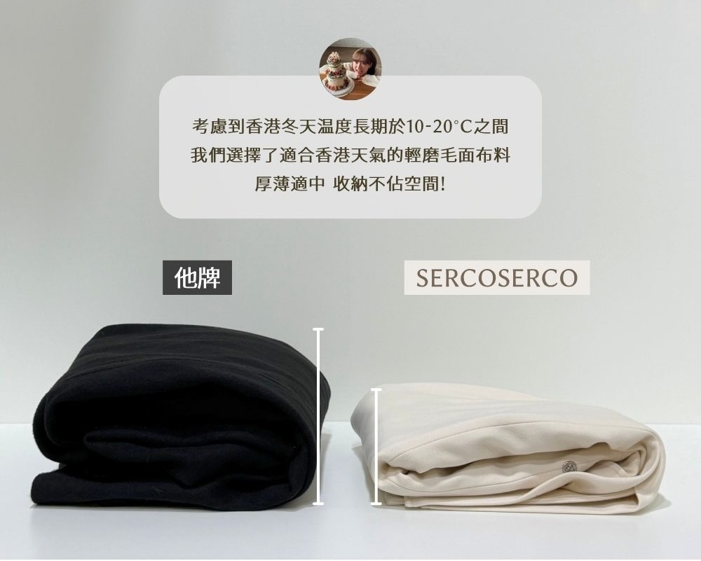 ⋄ 觸感柔滑的厚料仿毛呢材質