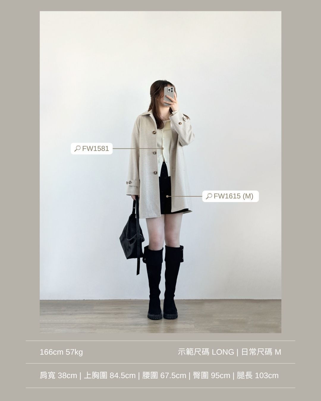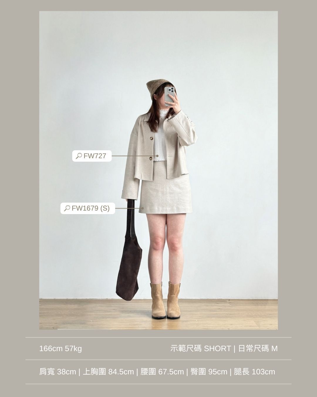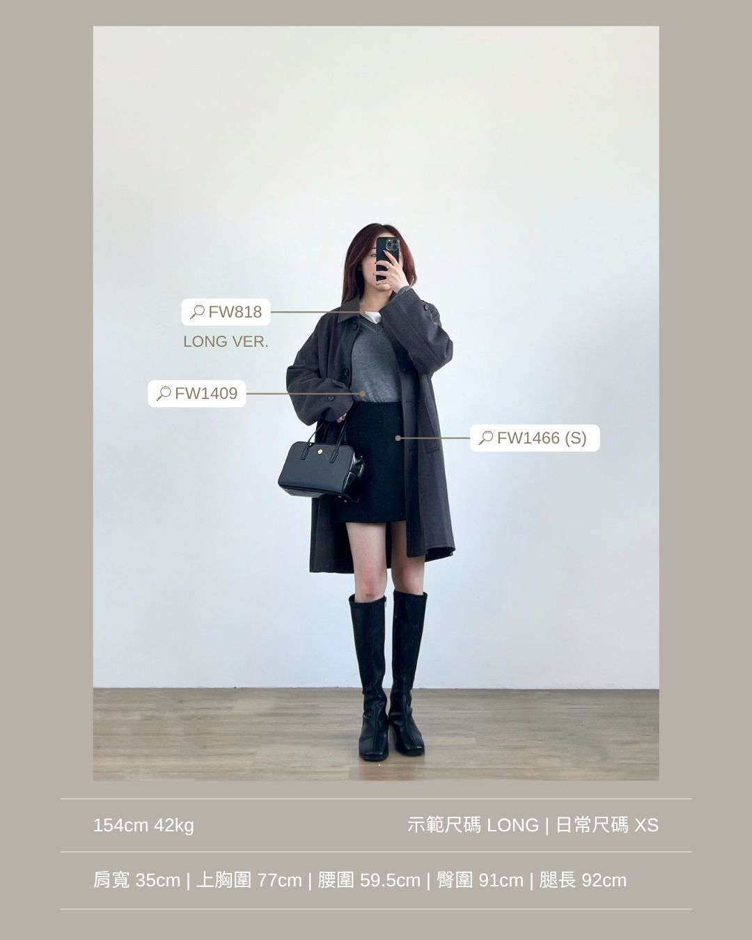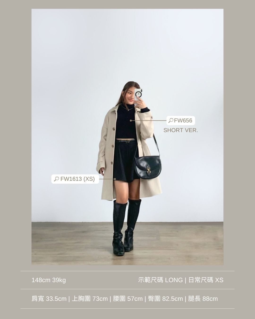 配搭短裙及中長靴穿著