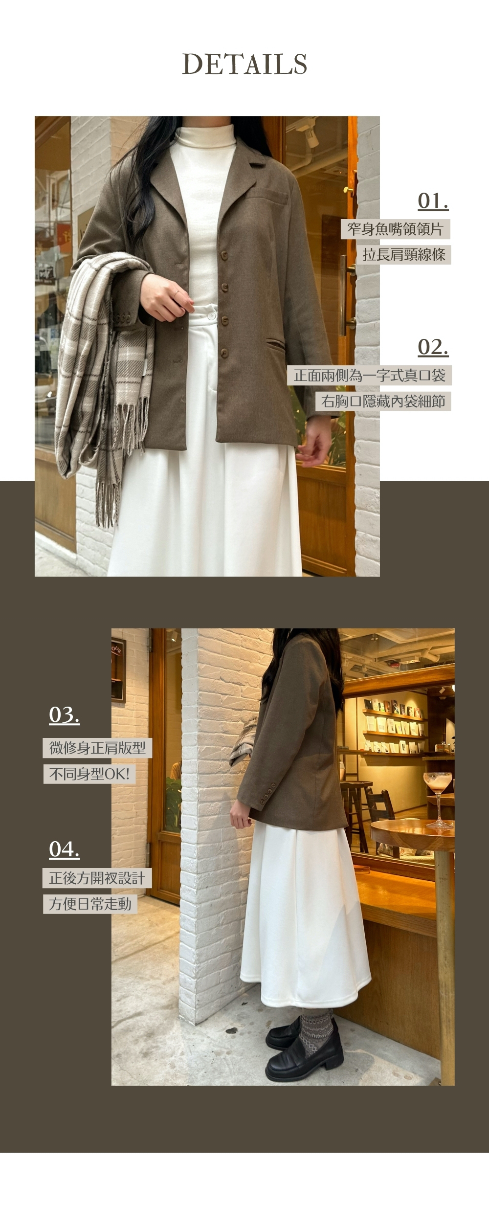 集輕盈~修身~feminine一身的輕版毛呢西裝外套