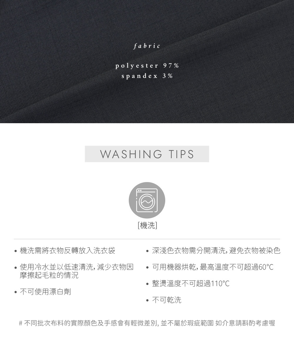 ⋄ 爽滑挺身質感西裝布料 洗後免整燙